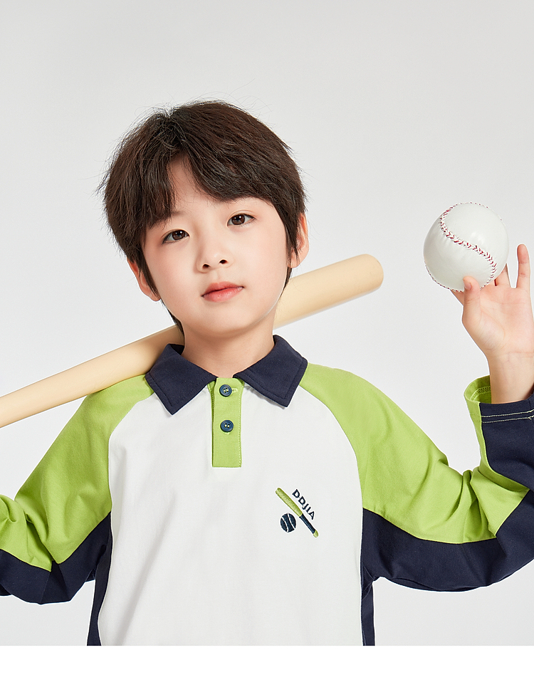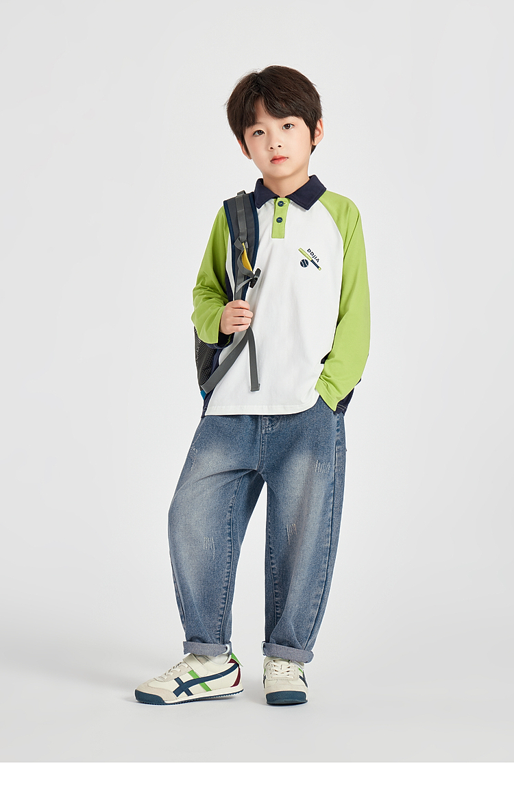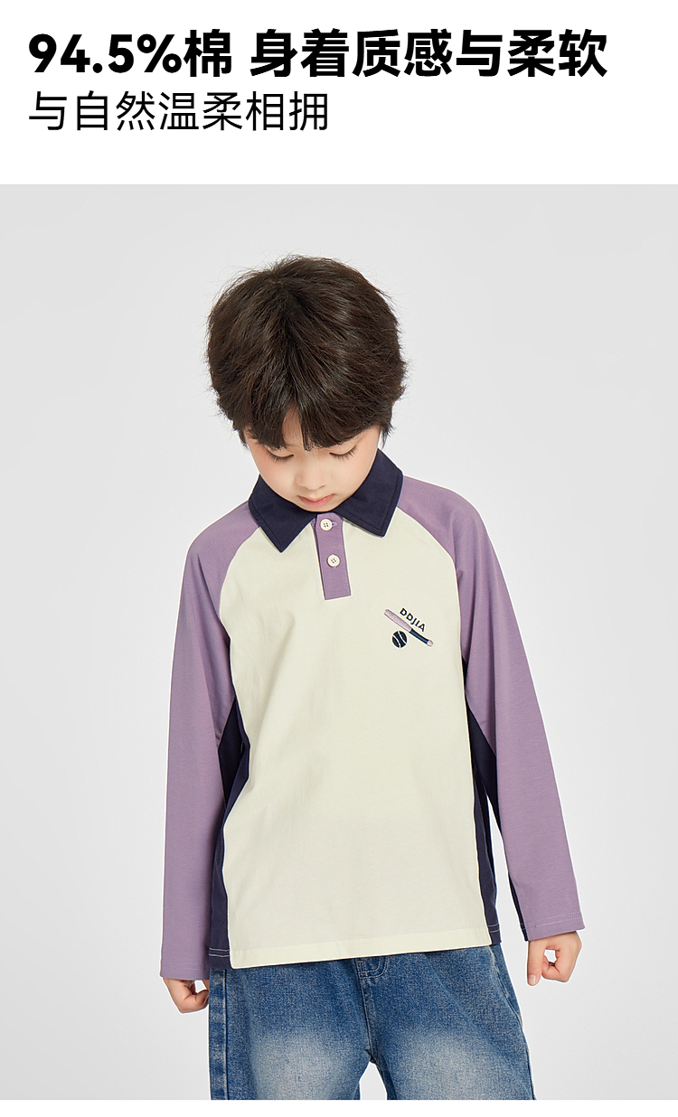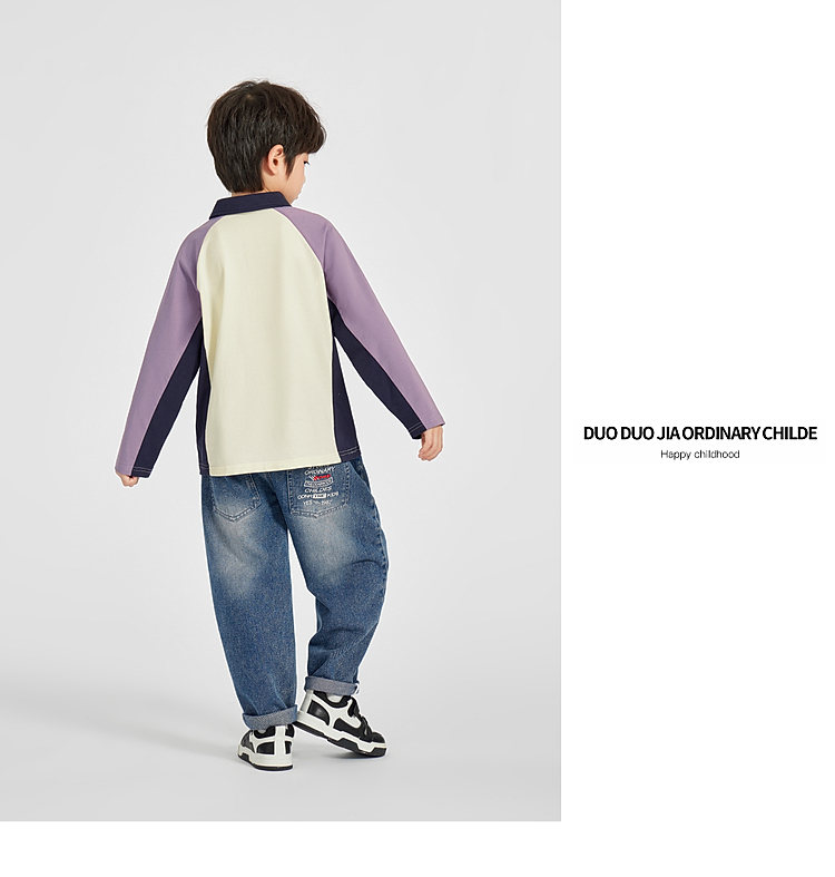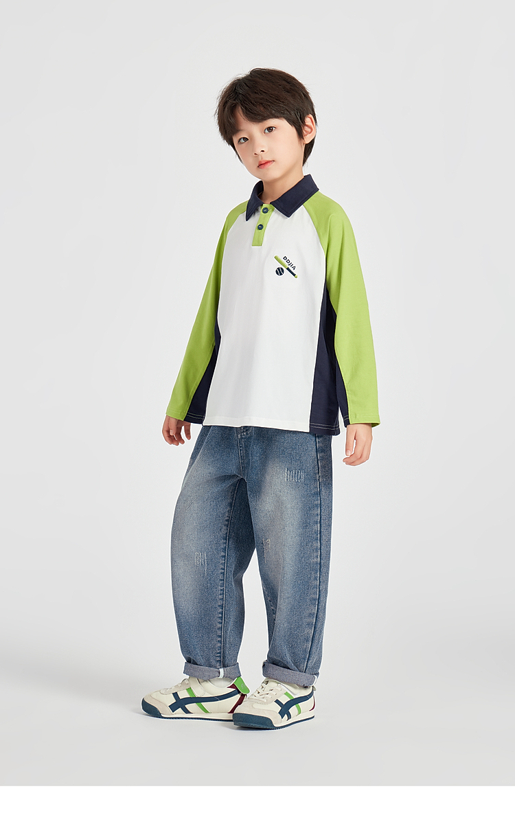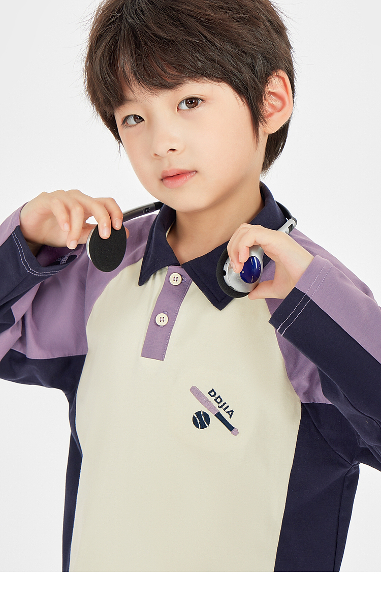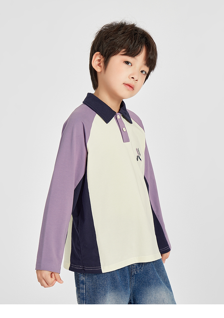 【团购价59.9】多多家男童polo衫2025新款春秋款儿童中大童撞色绣花休闲长袖T恤10400