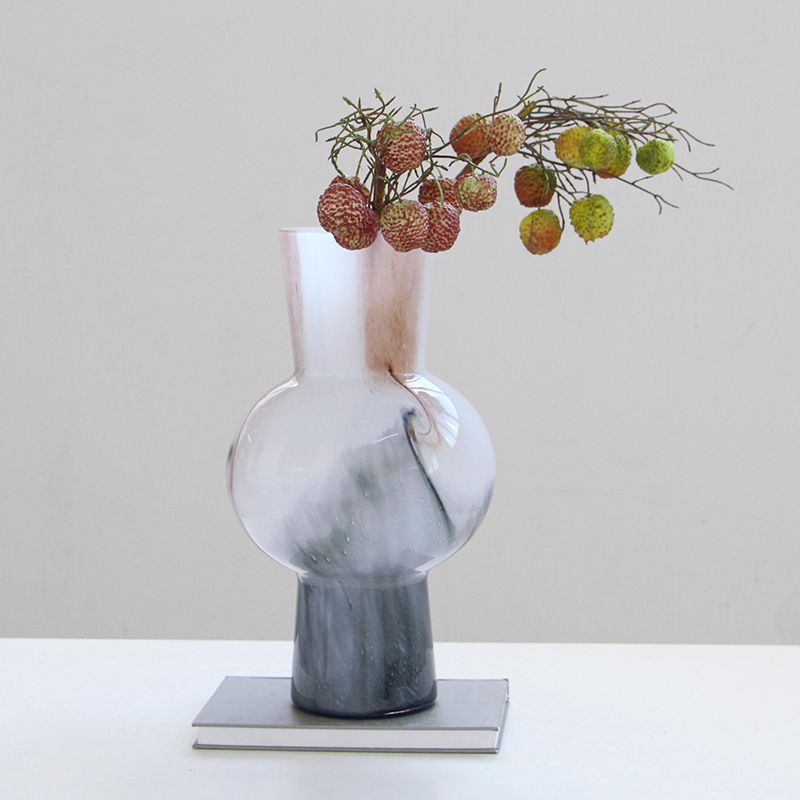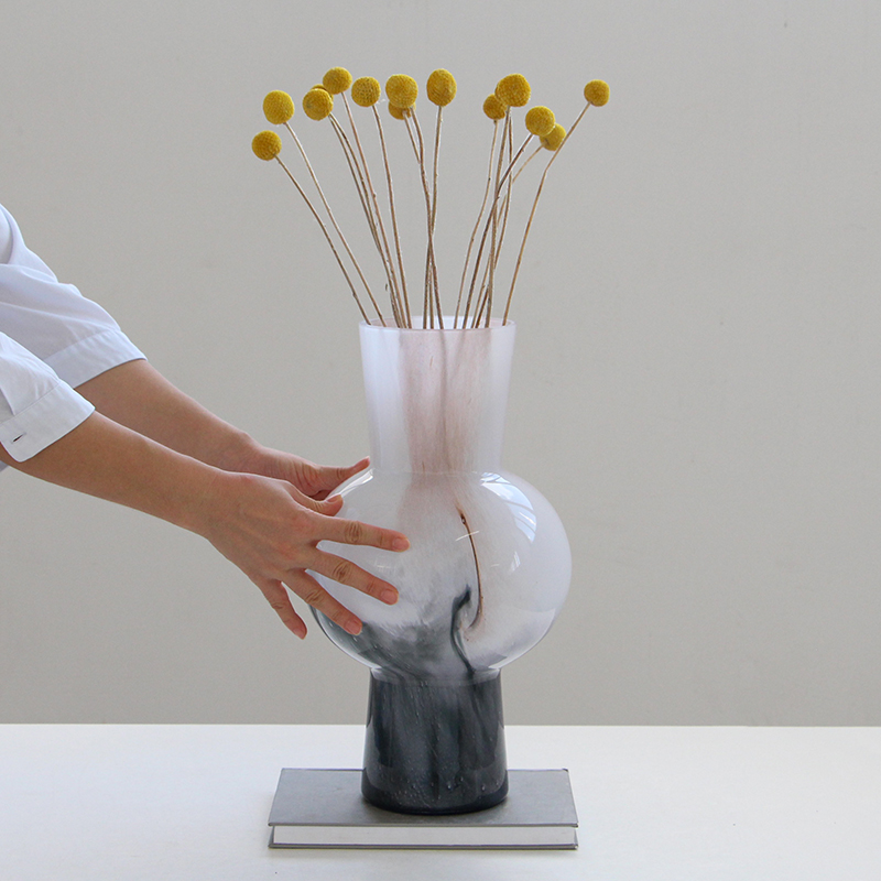 新中式石纹玻璃花器黑白水墨晕染侘寂风水培客厅餐桌装饰品摆件