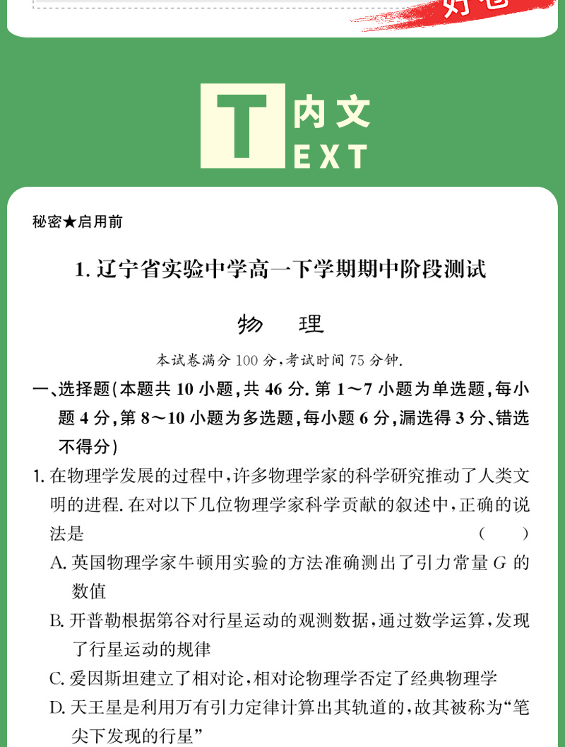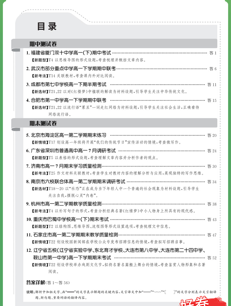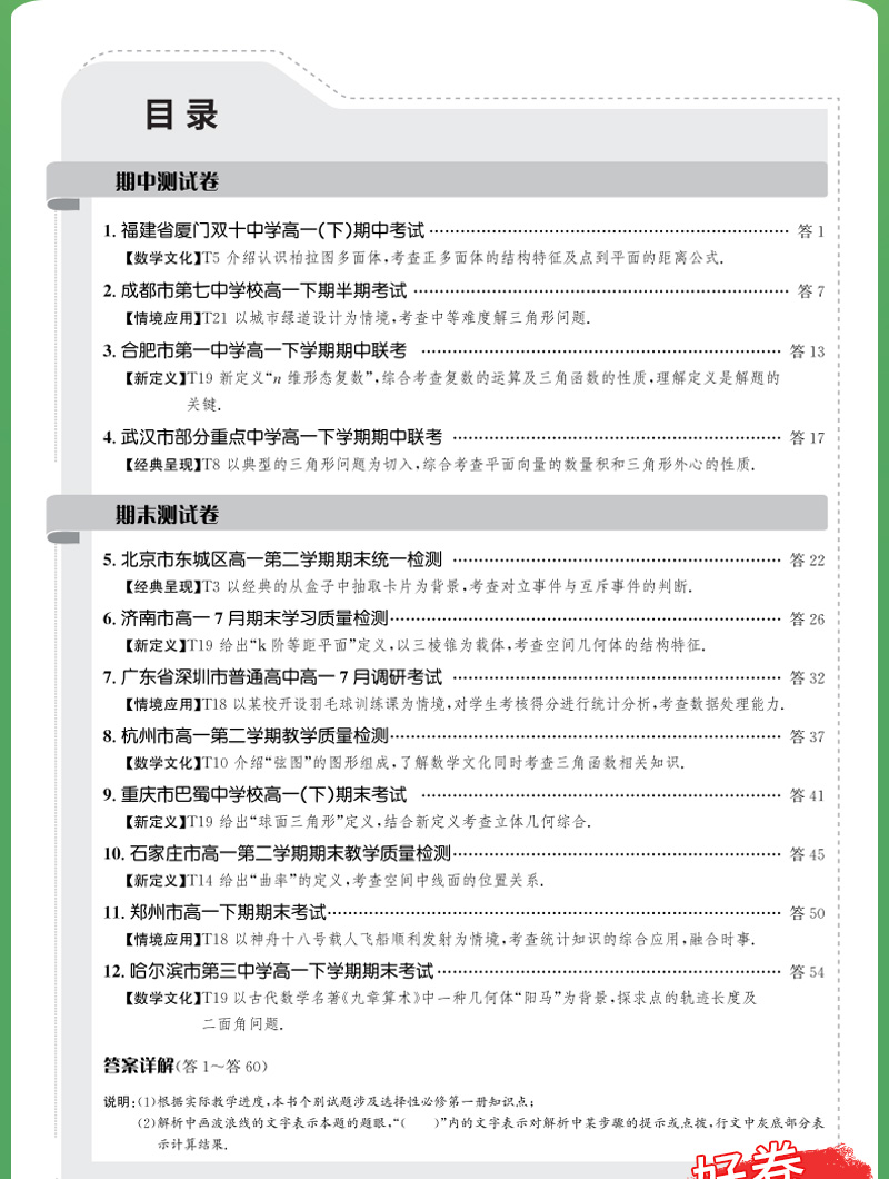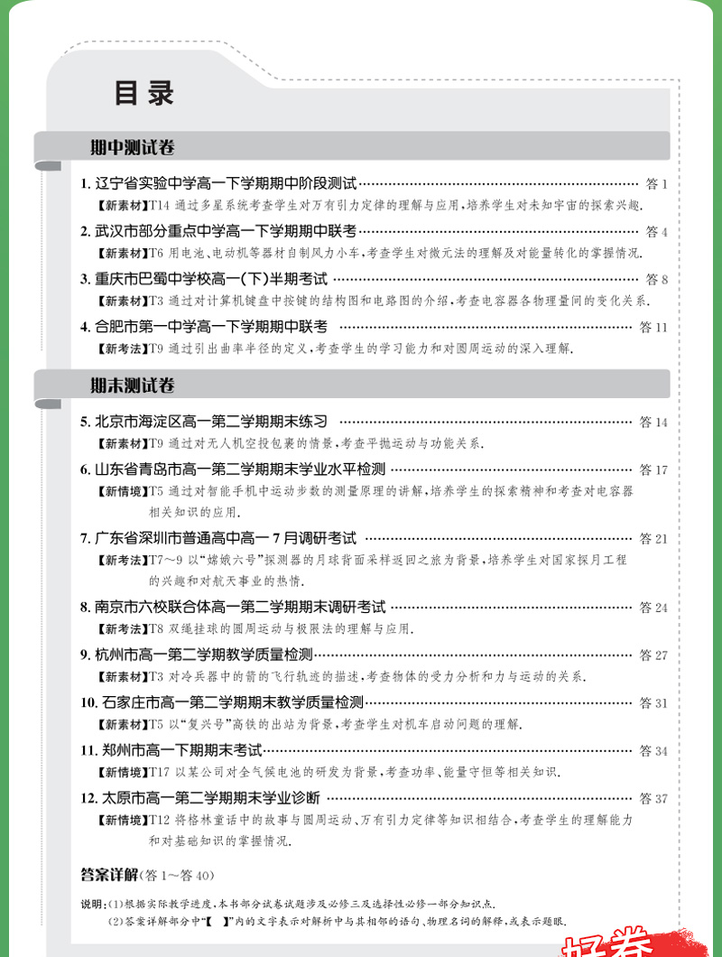 天利38套 2025高中名校 期中期末联考测试卷 高一第二学期 2024-2025学年适用