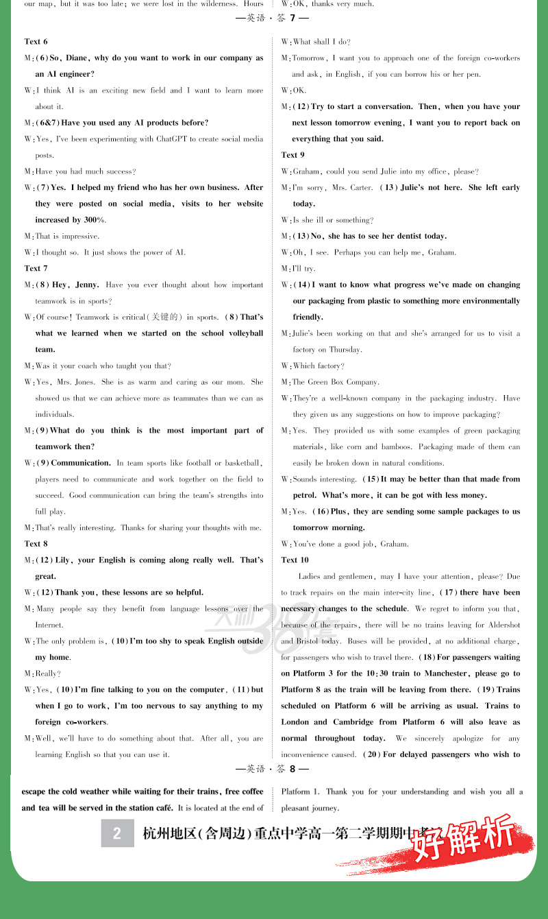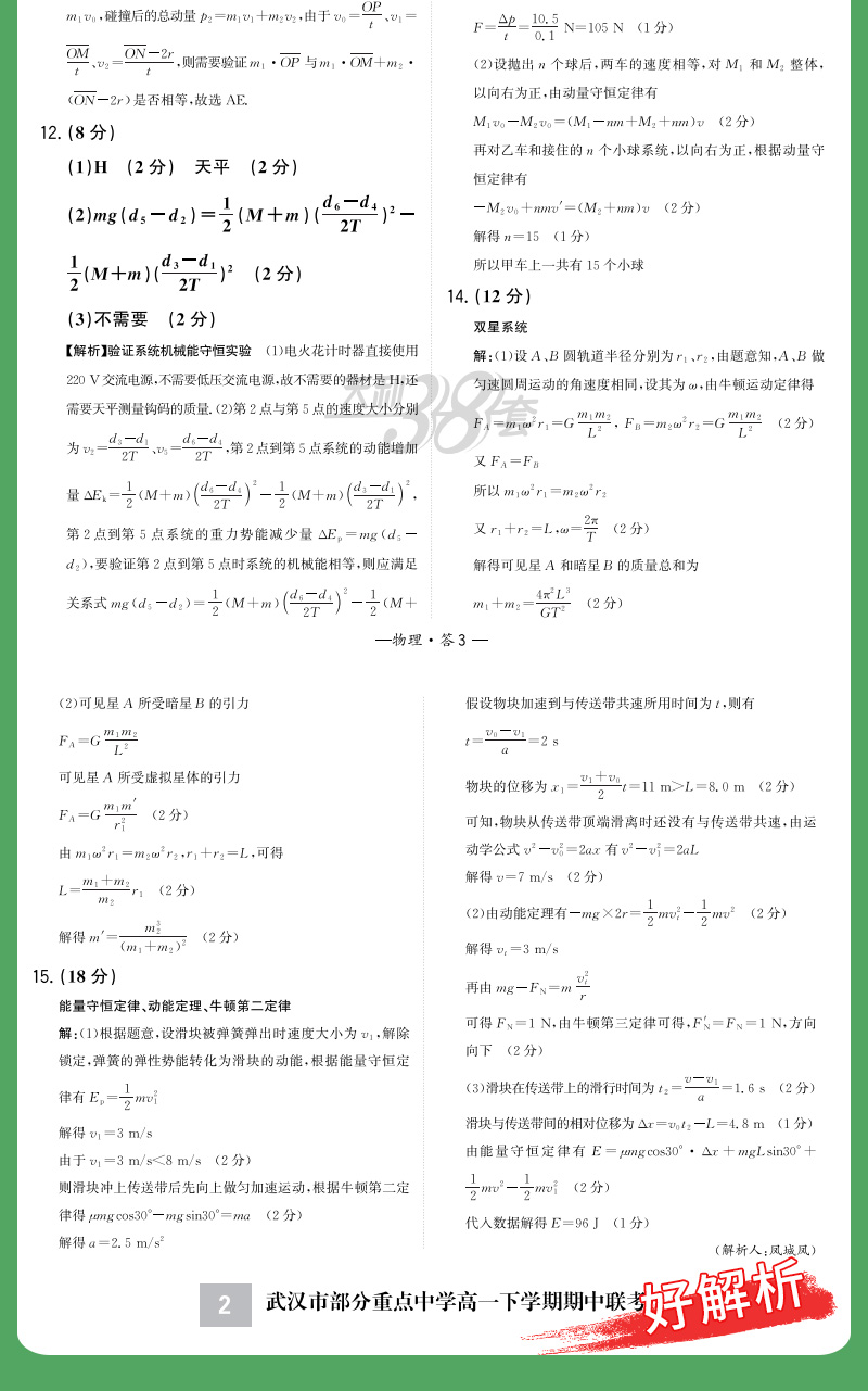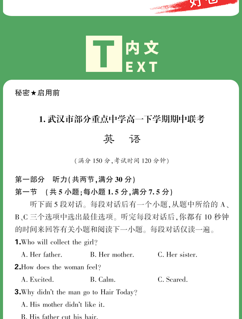 天利38套 2025高中名校 期中期末联考测试卷 高一第二学期 2024-2025学年适用