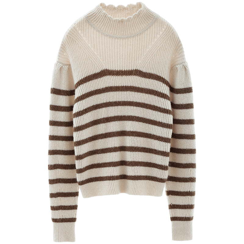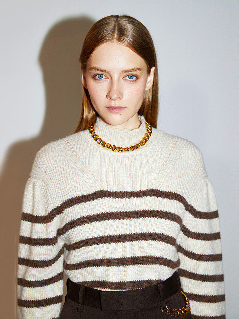 Miss Sixty2020冬季新款花瓣领条纹毛衣毛织套头衫女604RJ3050000