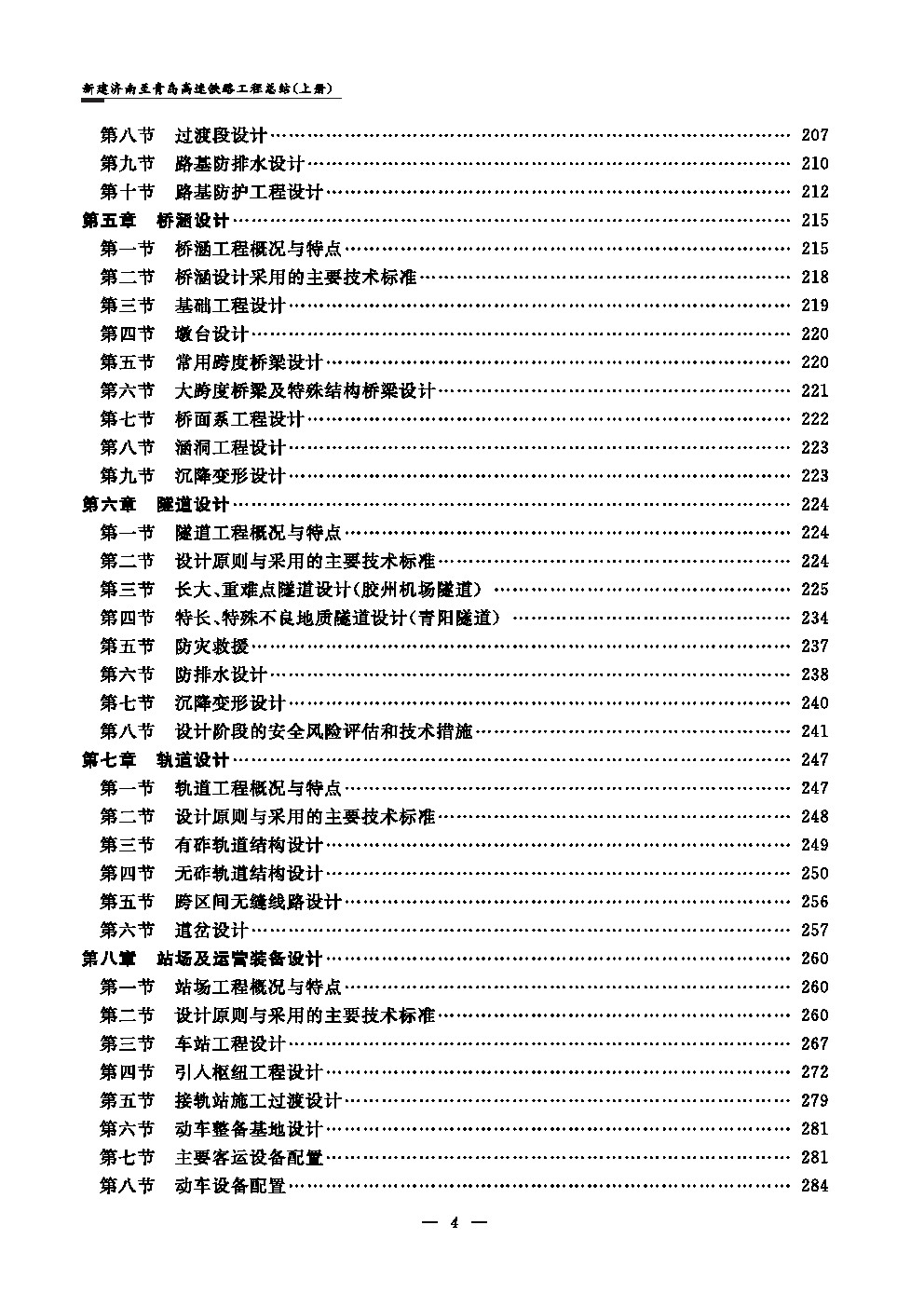 《新建济南至青岛高速铁路工程总结》由《综述篇》、《建设管理篇》、《勘察设计篇》、《工程施工篇》和《科研与技术创新篇》五个篇章组成,忠实且全面地记录了济青高铁工程的建设历程,是济青高铁参建各方和广大建设者智慧和汗水的结晶。《总结》既记述了济青高铁全部建设过程,又重点介绍了工程建设的重点和难点;既归纳了济青高铁的全新建设模式,又提炼了四新技术在工程建设中的应用;从不同侧面凝练了济青高铁在安全管理、质量控制、投资控制、工期保障、环境保护、科技创新、社会稳定等方面的经验和教训。