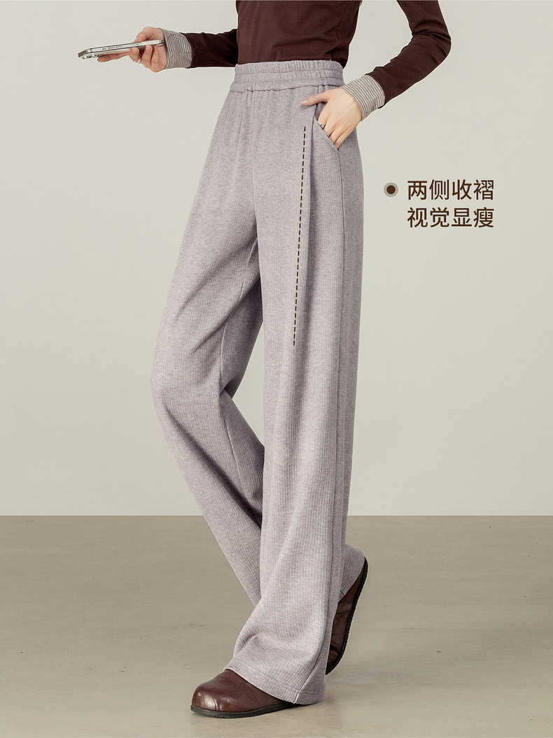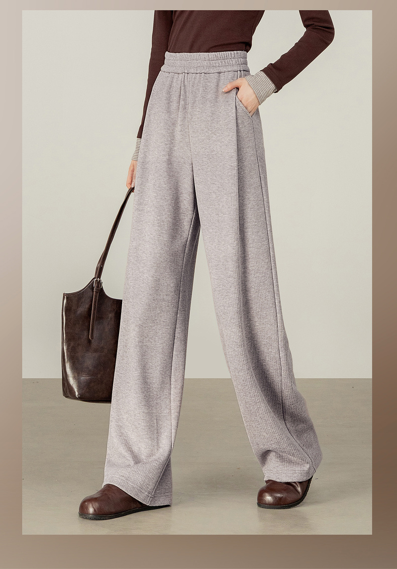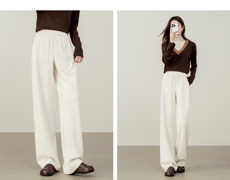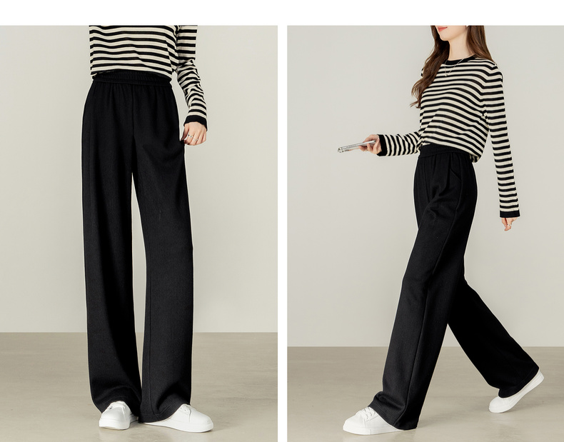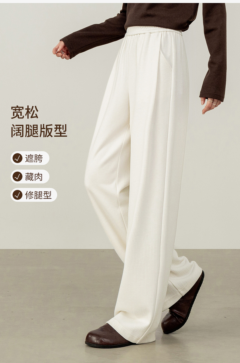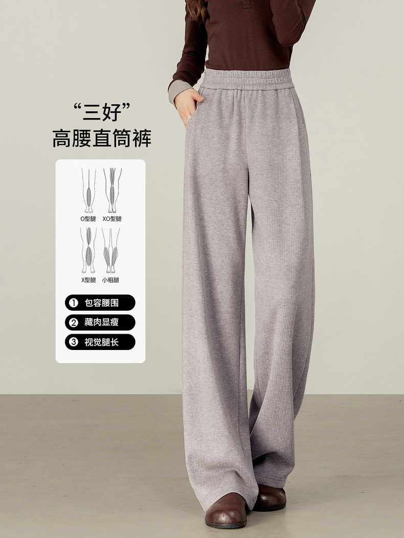 【内购】【5色可选】简约通勤梨型身材松紧高腰遮肉显瘦厚直筒长裤-153K80276