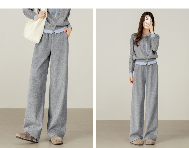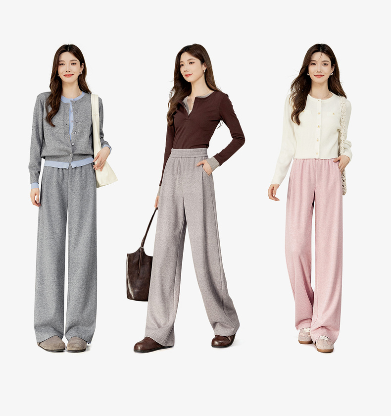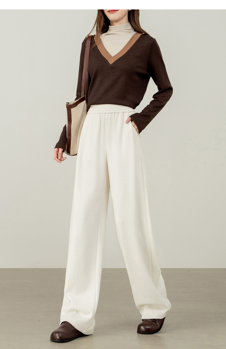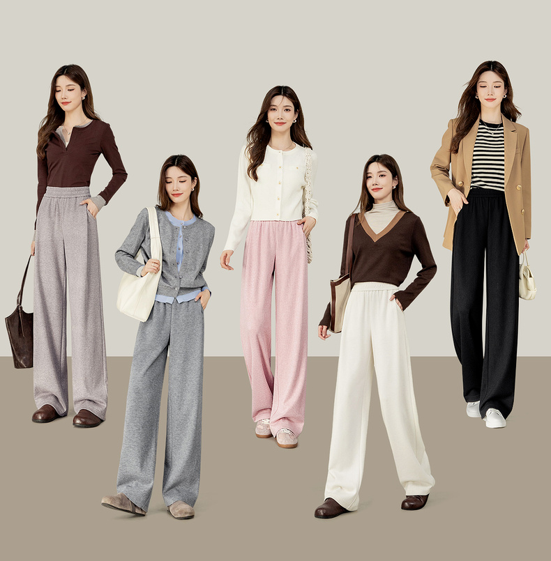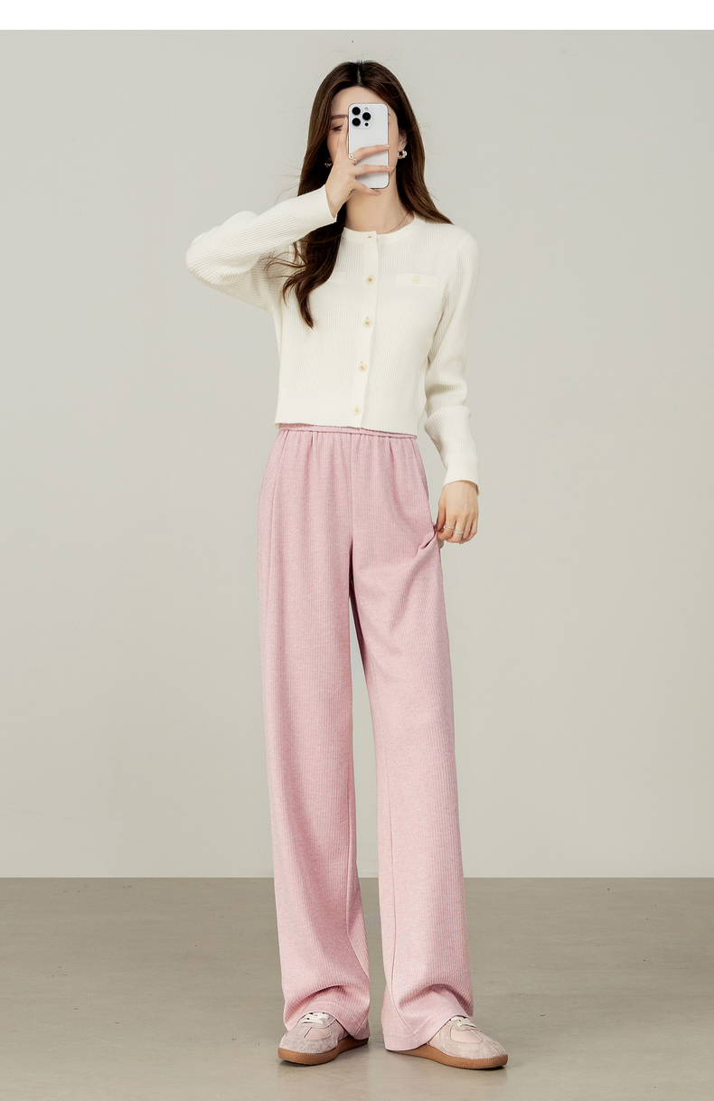 【内购】【5色可选】简约通勤梨型身材松紧高腰遮肉显瘦厚直筒长裤-153K80276