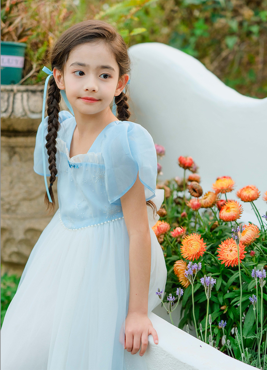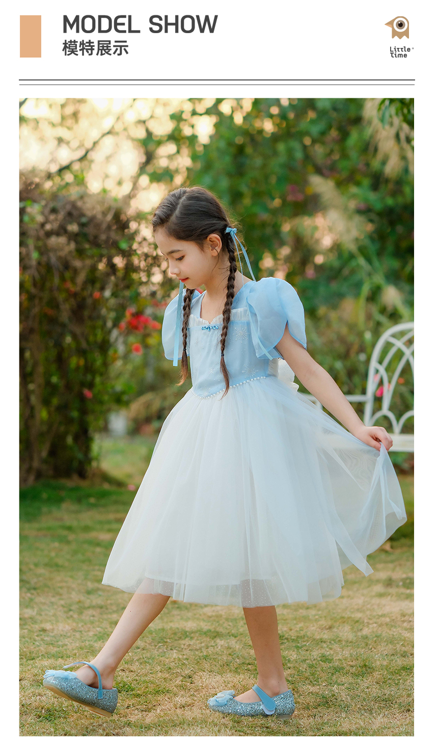 littletime女童连衣裙2024春夏新款短袖中大儿童洋气泡泡袖公主裙