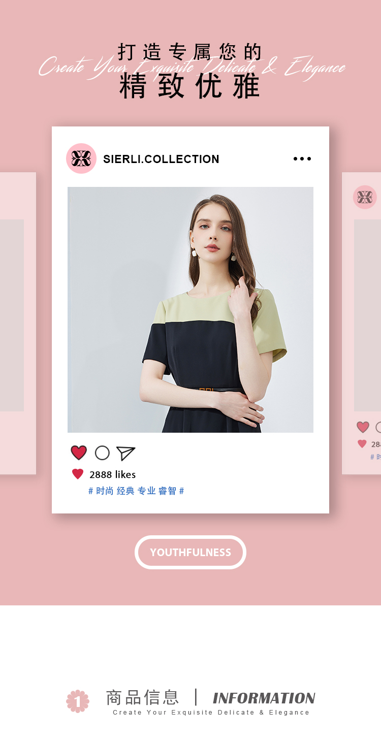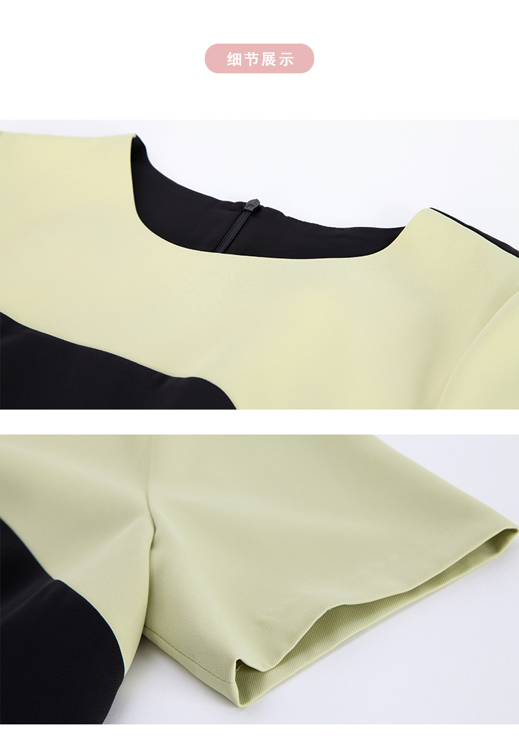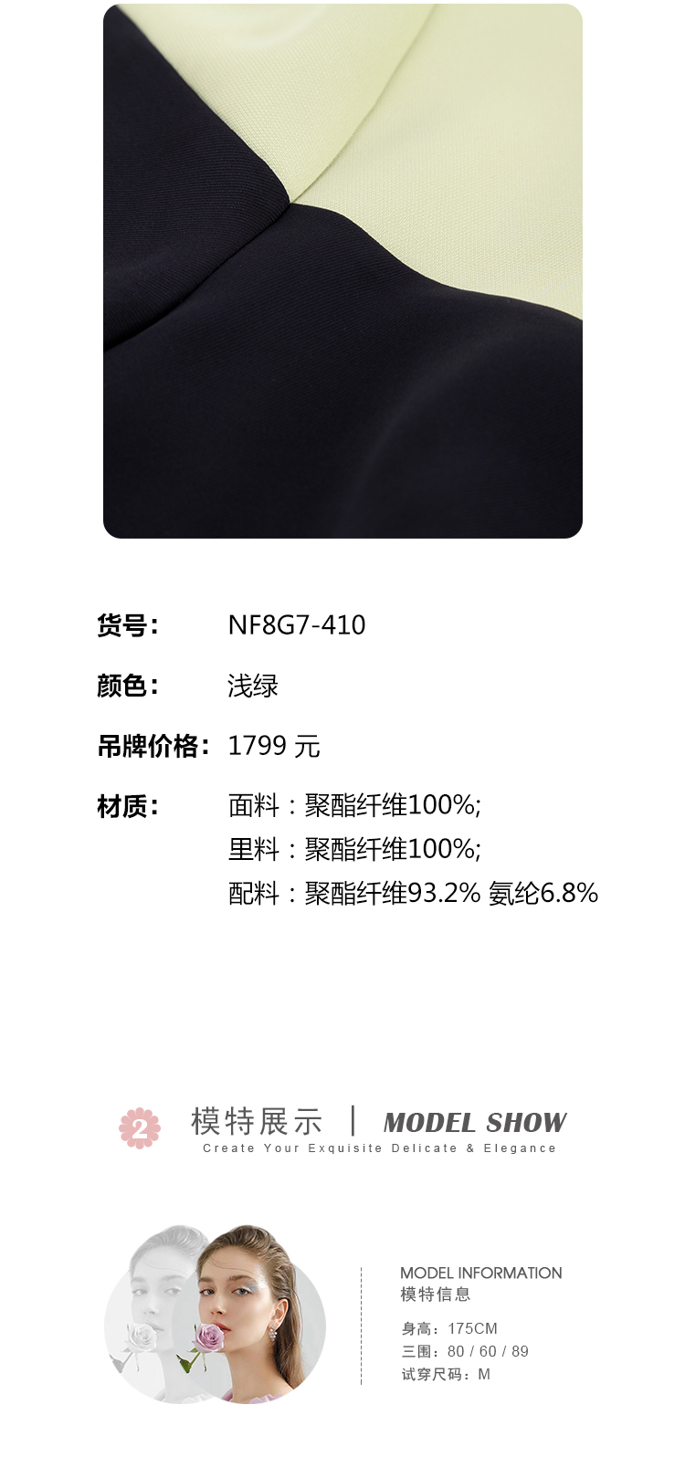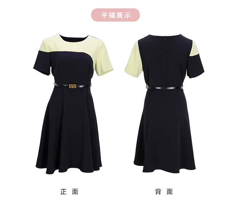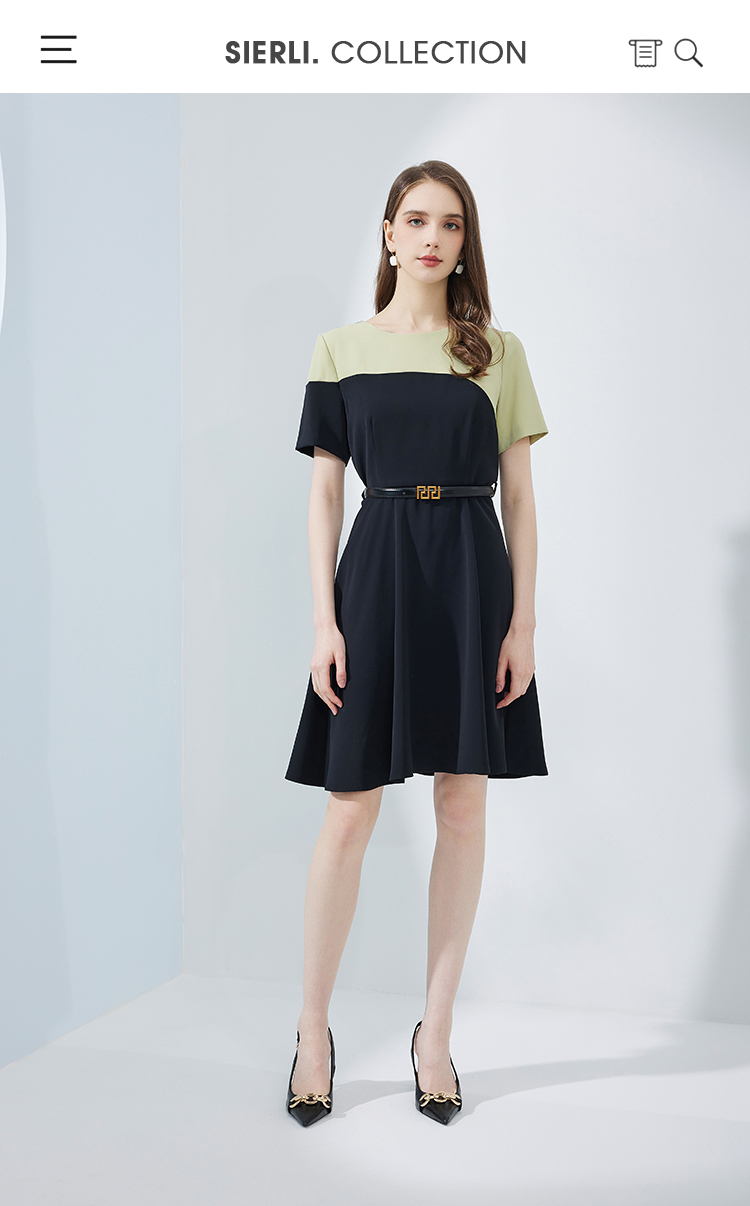 NF8G7斯尔丽瑟俪2023新款不对称线条撞色简洁时尚收腰A摆减龄连衣裙
