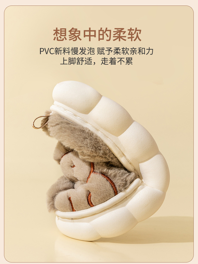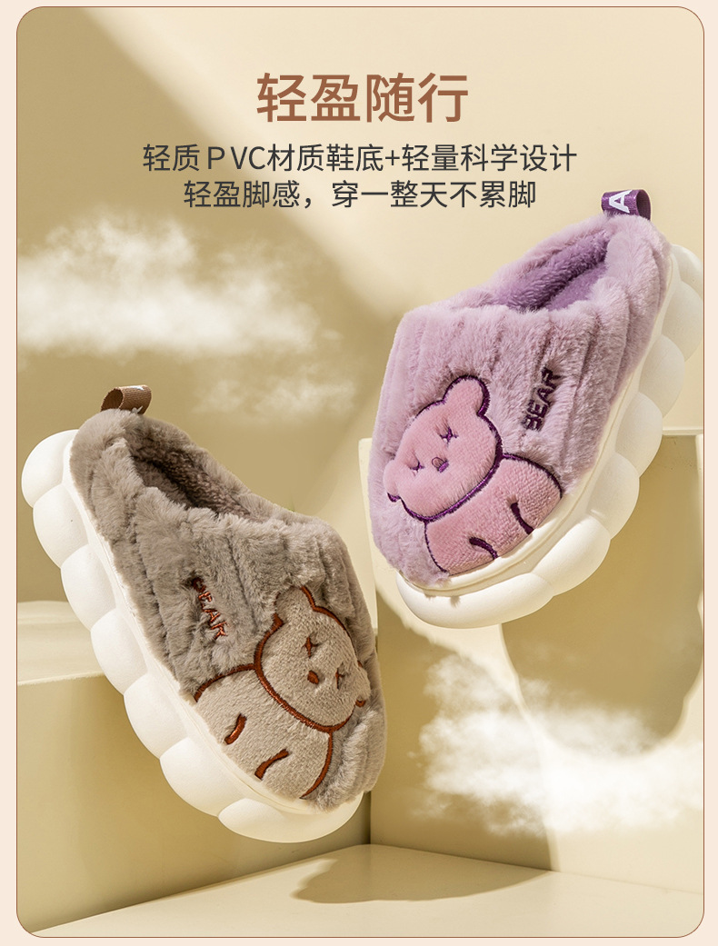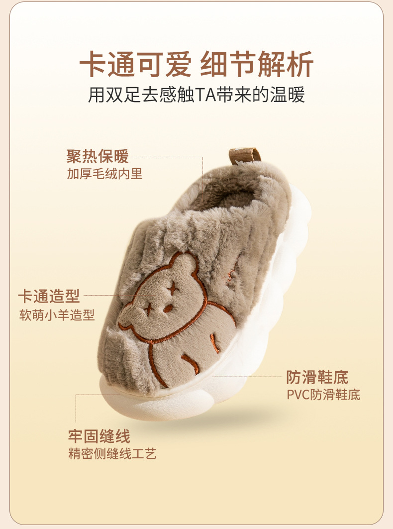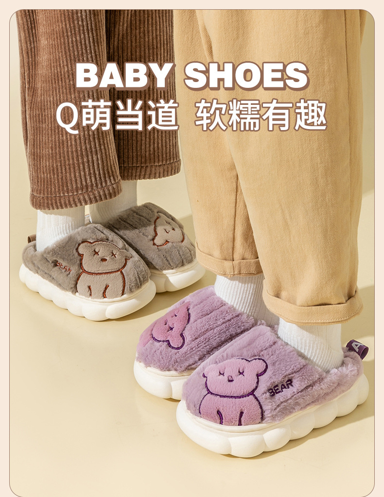 猪爸爸儿童棉拖鞋秋冬季男童女童小熊拖鞋家居鞋小孩毛毛拖鞋