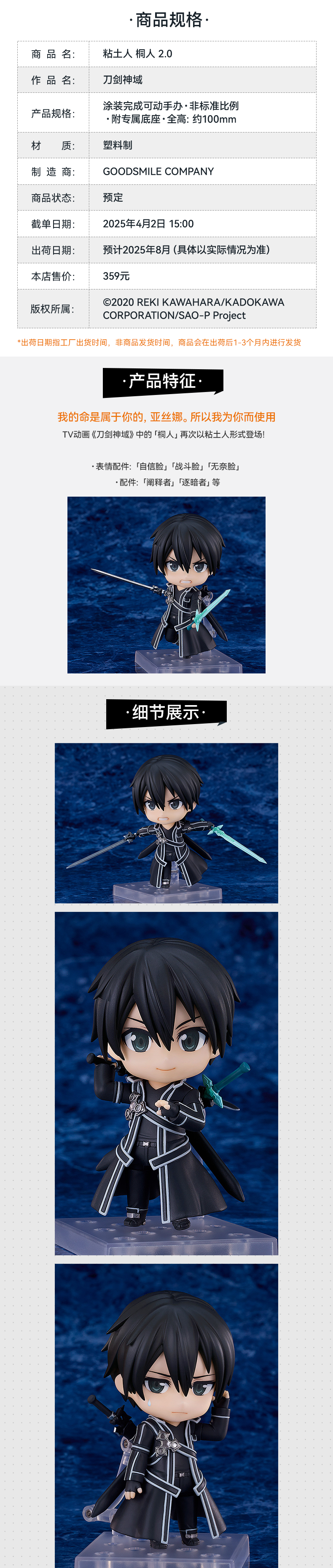 【GSC现货】粘土人 桐人 2.0 刀剑神域