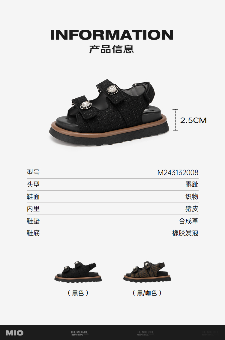 MIO米奥夏季小香风女鞋舒适亲肤厚底休闲凉鞋沙滩鞋女鞋M243132008