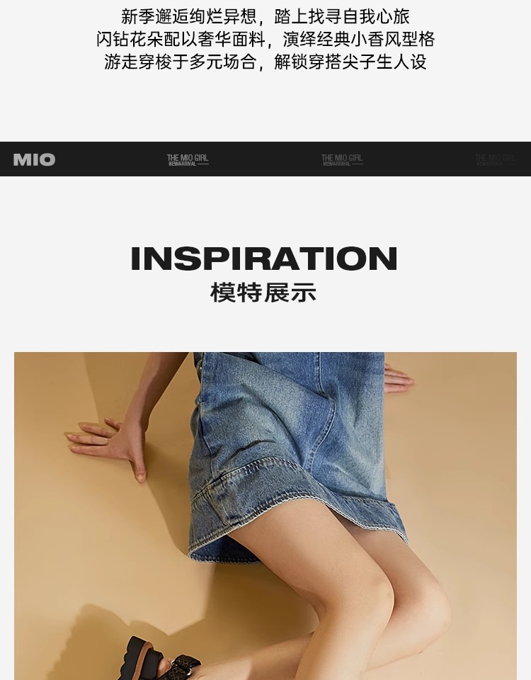MIO米奥女鞋小香风凉鞋春夏新款甜美链条蝴蝶结法式浅口单鞋皮鞋M252240712