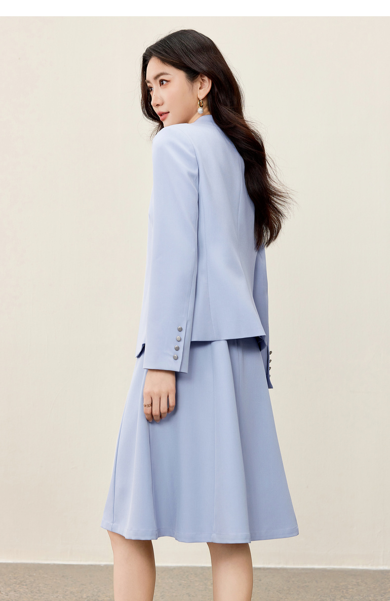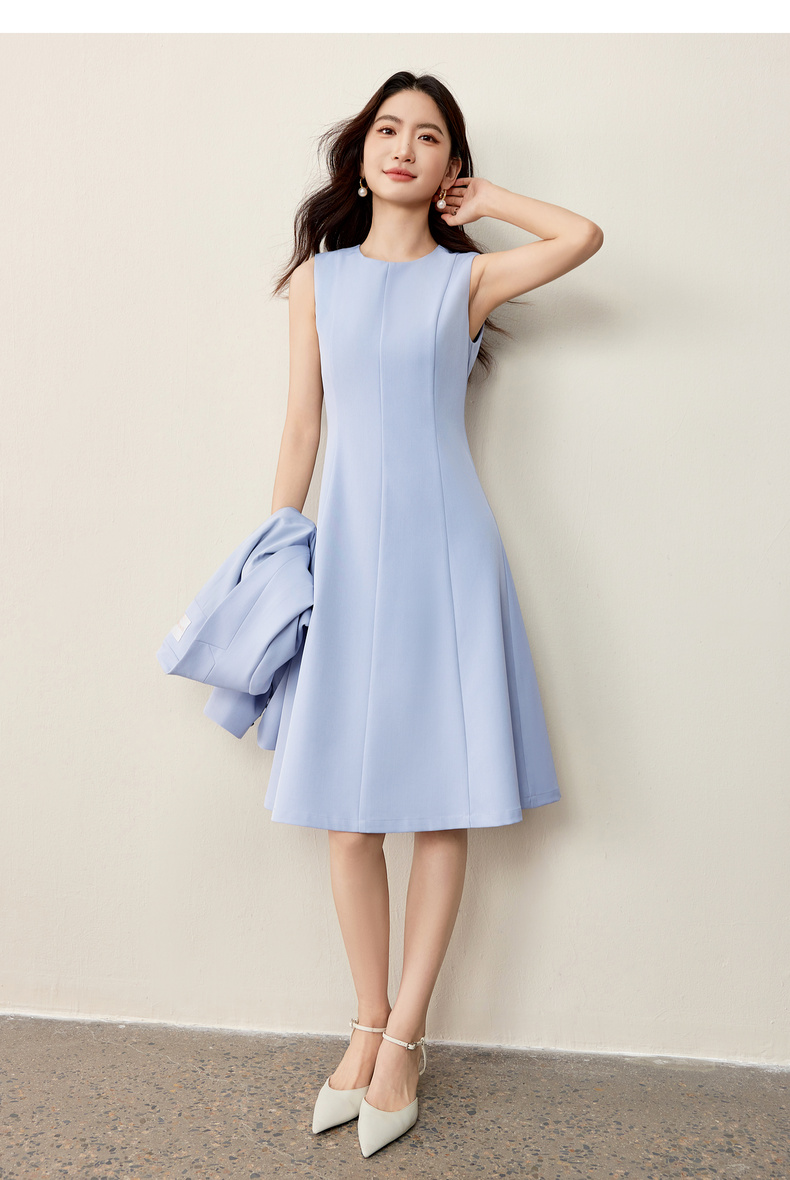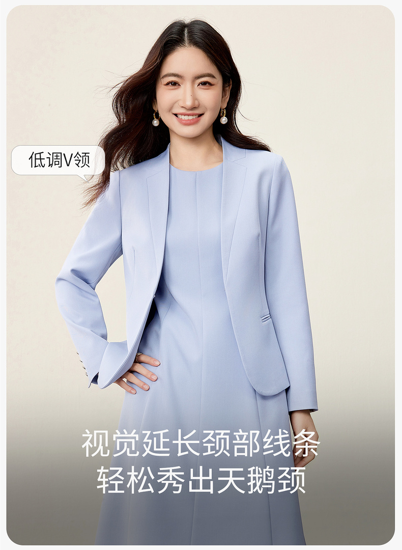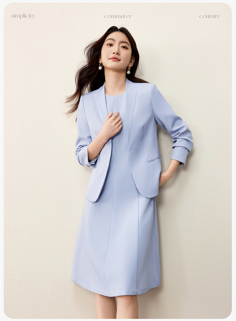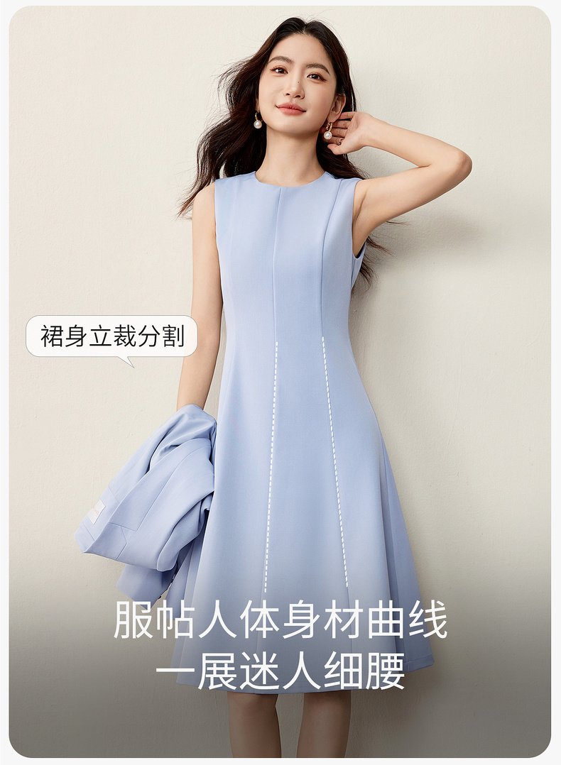 【内购】【免搭配套装】通勤V领一粒扣长袖垫肩外套圆领无袖A字背心连衣裙-153ZA2893