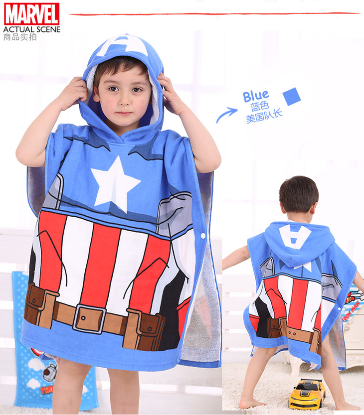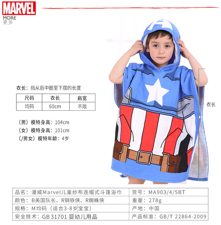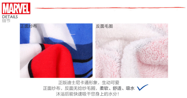 迪士尼漫威系列纯棉纱布儿童斗篷浴巾浴袍抖音宝宝带帽披风沙滩巾