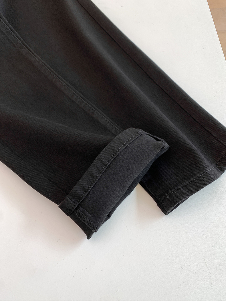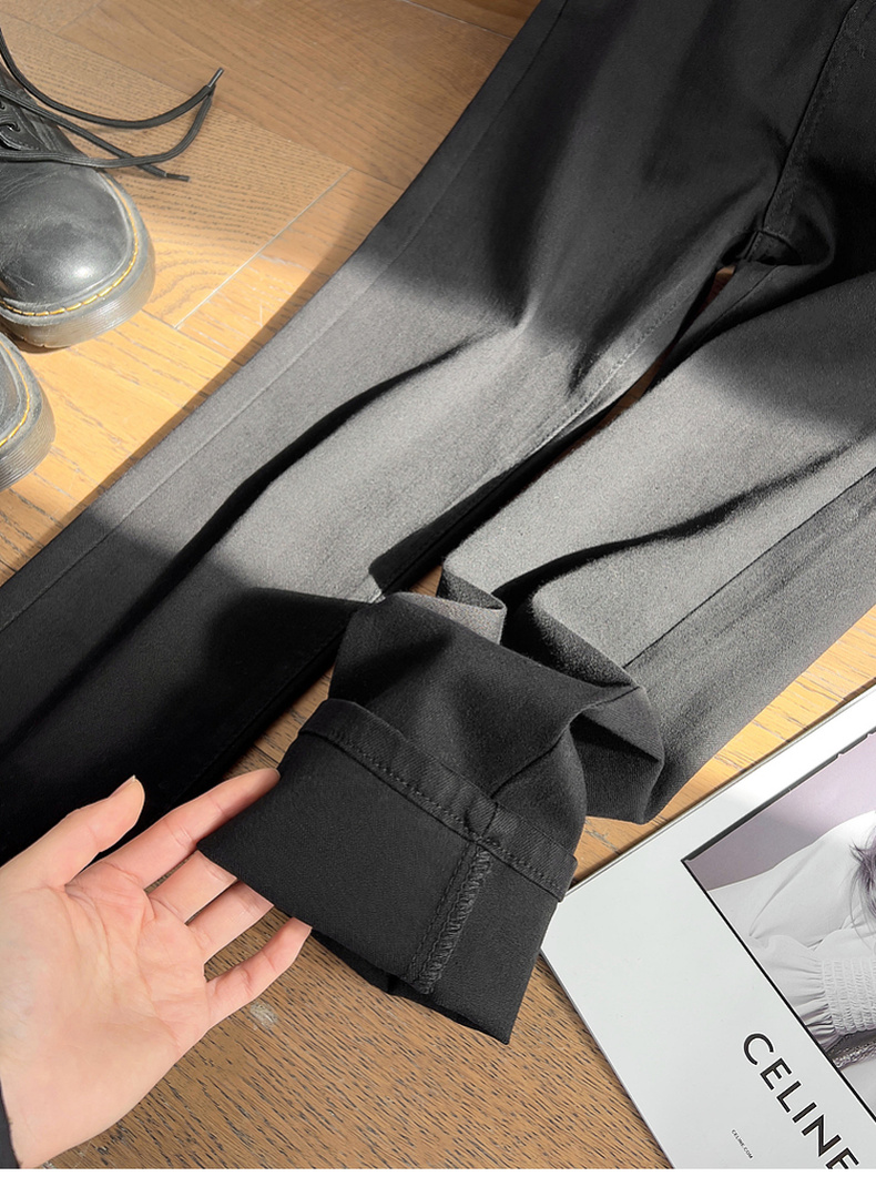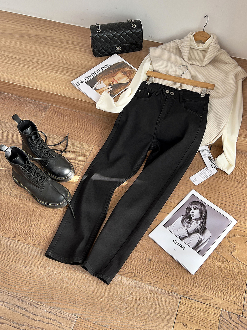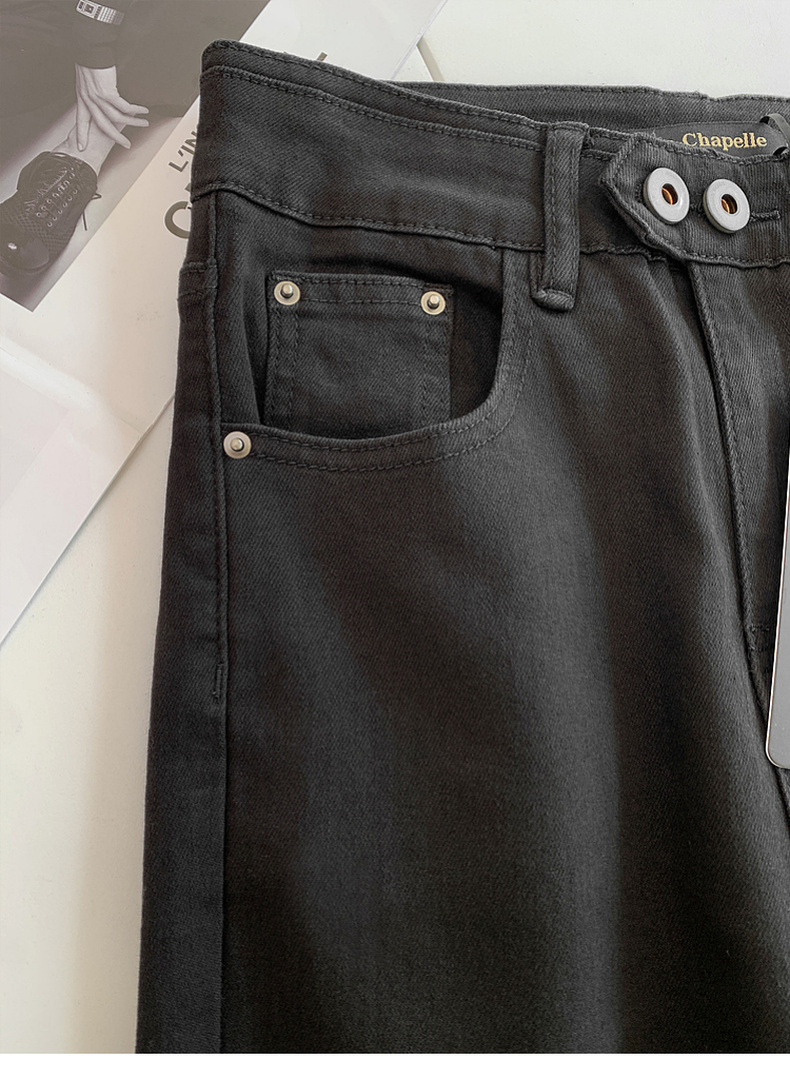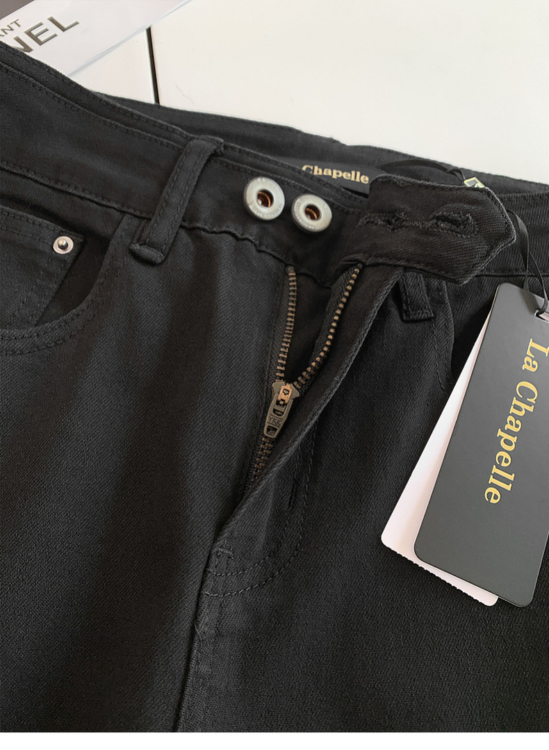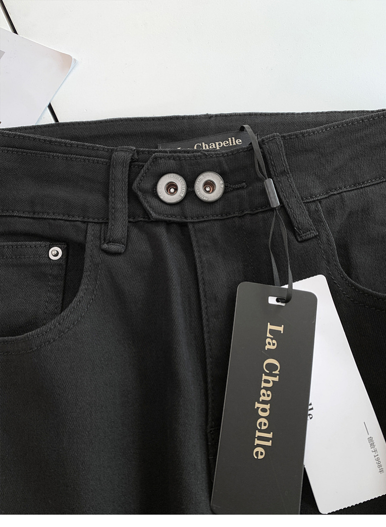 专柜实拍【长期主义/小黑裤】拉夏贝尔/La Chapelle两粒扣休闲百搭时尚通勤小个子小脚牛仔裤萝卜裤春季新款★