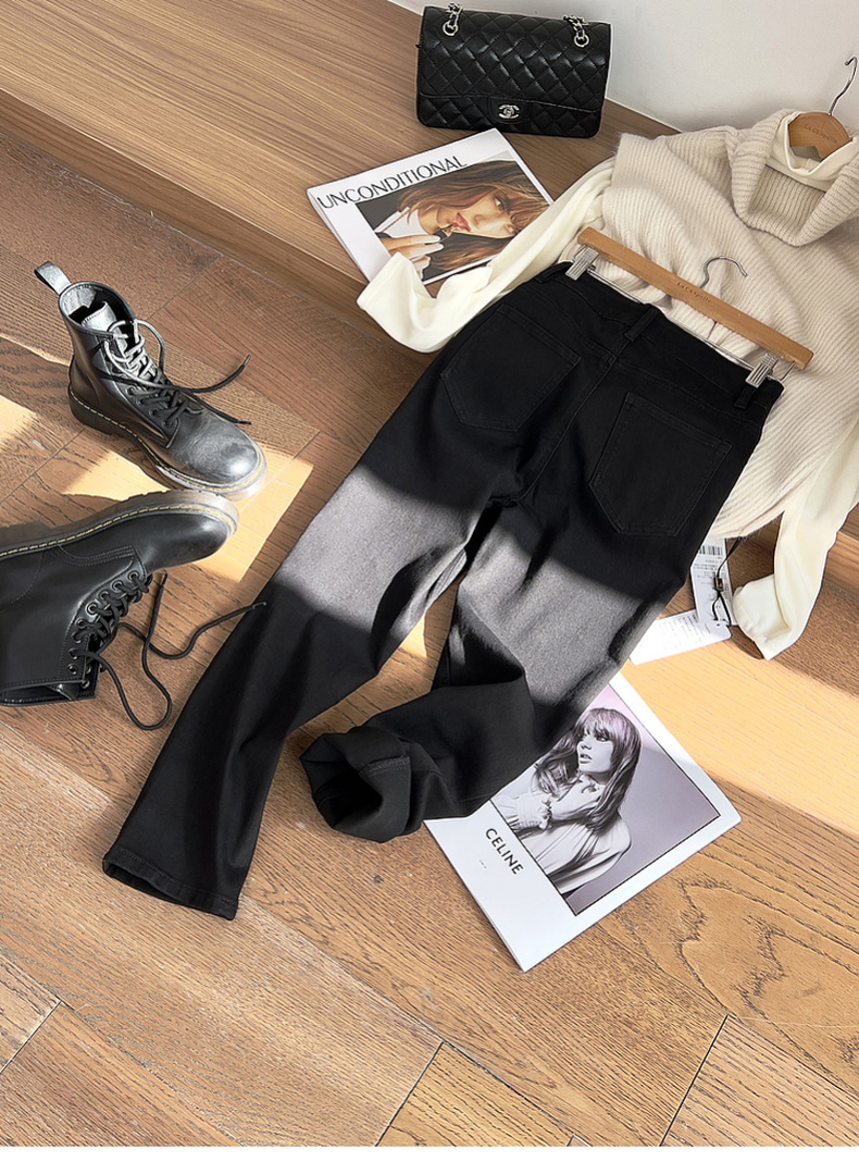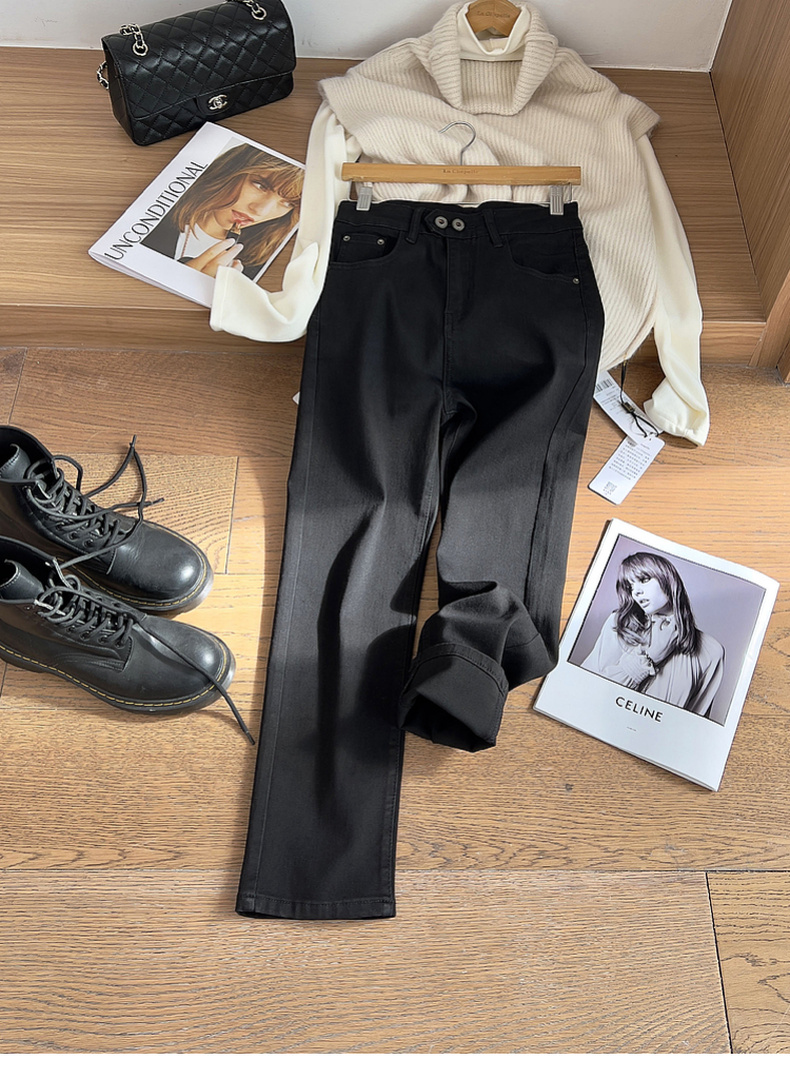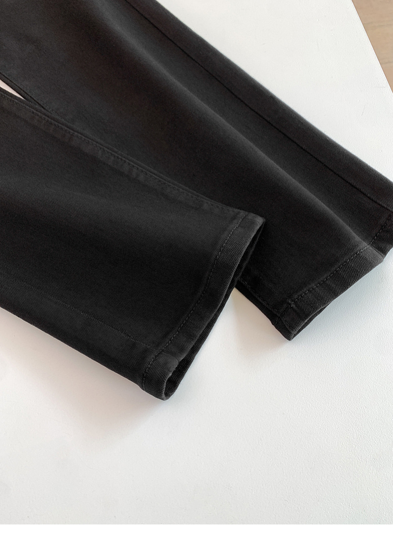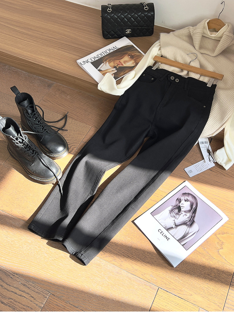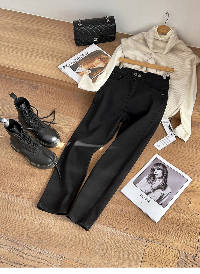 专柜实拍【长期主义/小黑裤】拉夏贝尔/La Chapelle两粒扣休闲百搭时尚通勤小个子小脚牛仔裤萝卜裤春季新款★