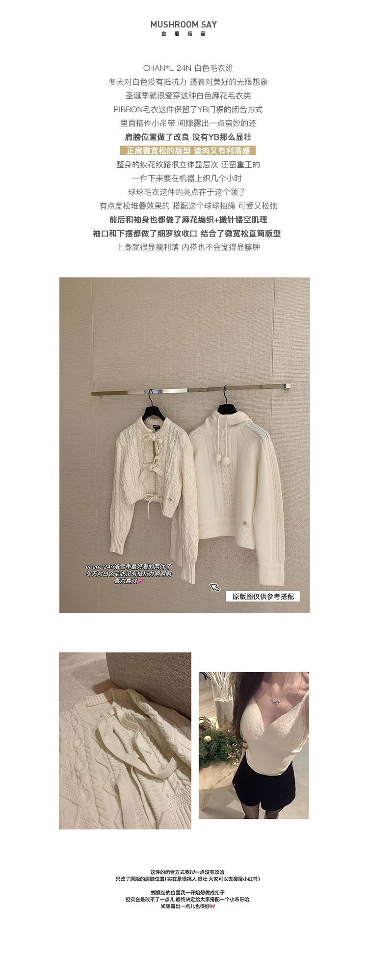 金蘑菇菇 圣诞情书 就要这一抹纯白/ 绞花毛衣