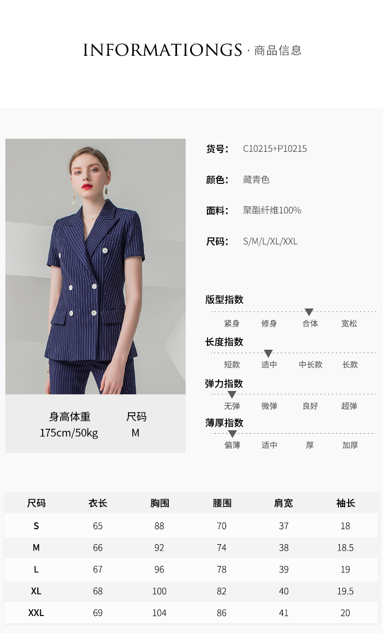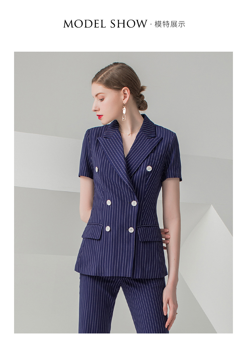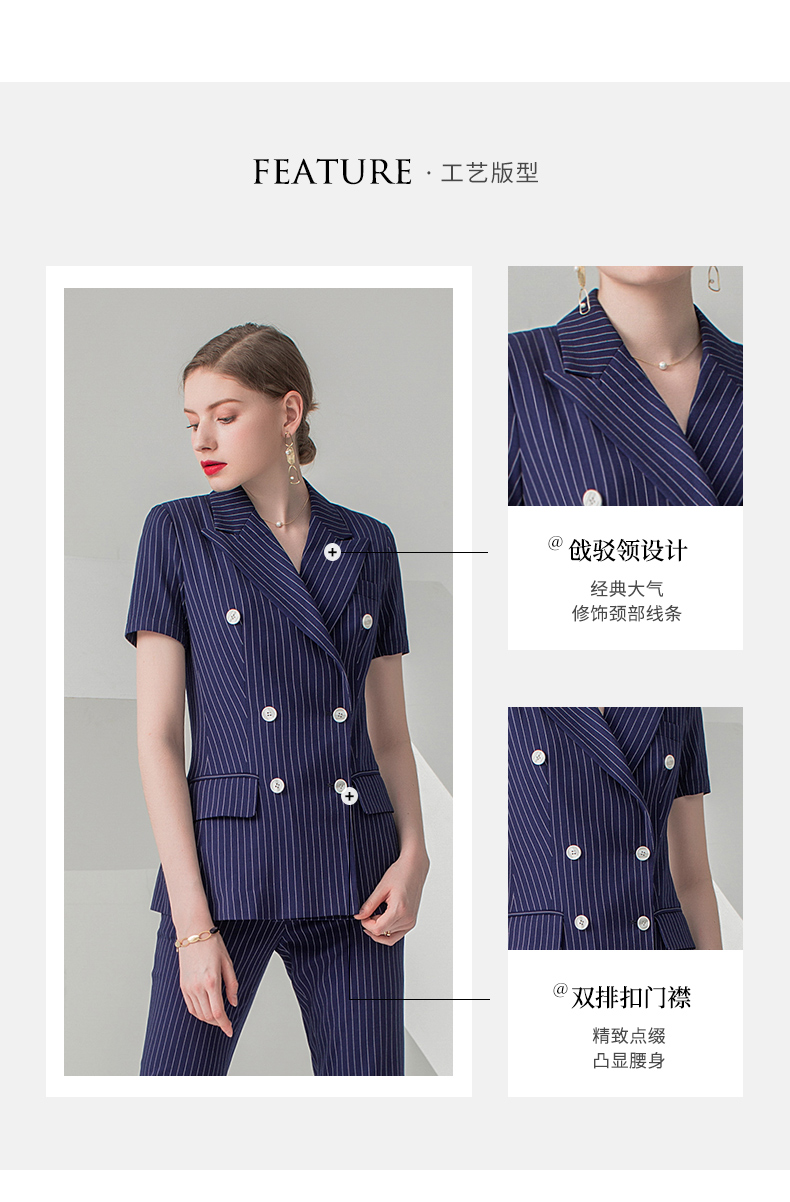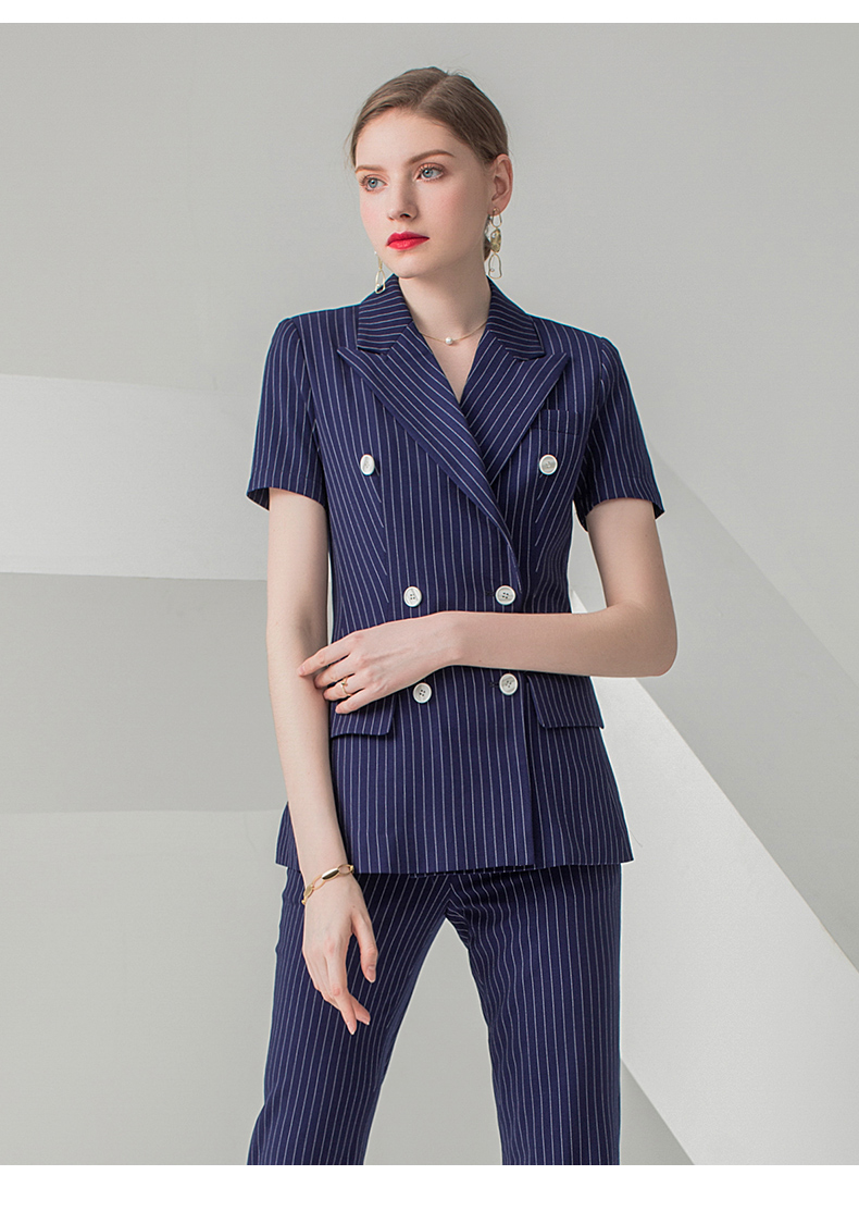 IWY/藏青色短袖西装长裤套装CP10215