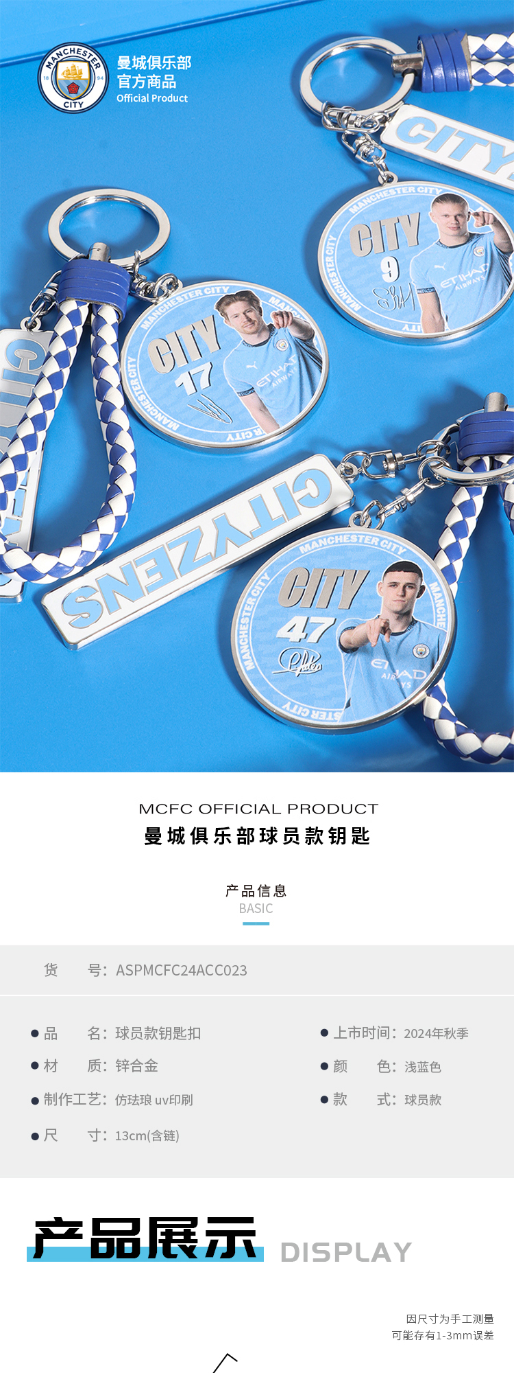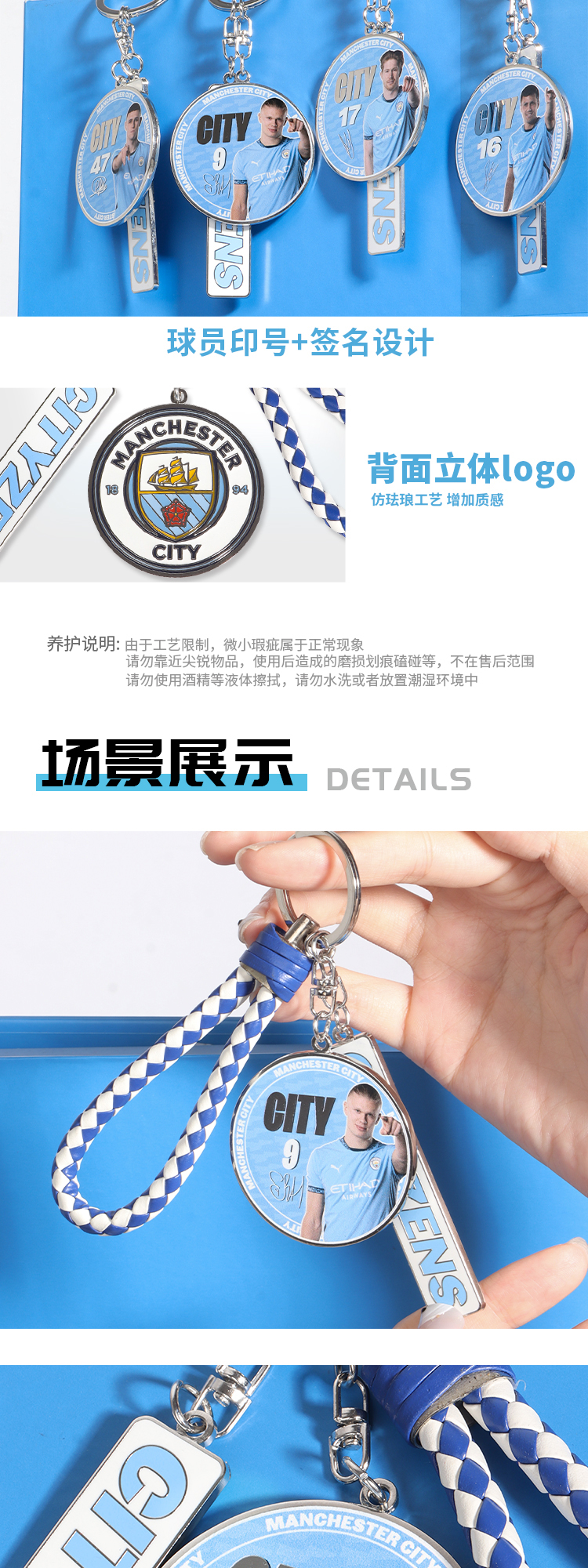 【官方正版】曼城俱乐部 | 球星钥匙扣金属挂件礼物纪念品球迷用品