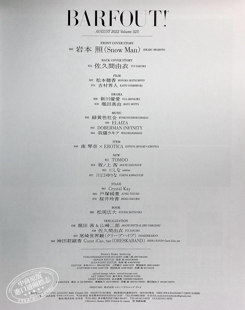 【中商原版】BARFOUT 2022 Vol.323 岩本照 Snow Man 日文原版 BARFOUT バァフアウト 2022年8月号 岩本照 Snow Man