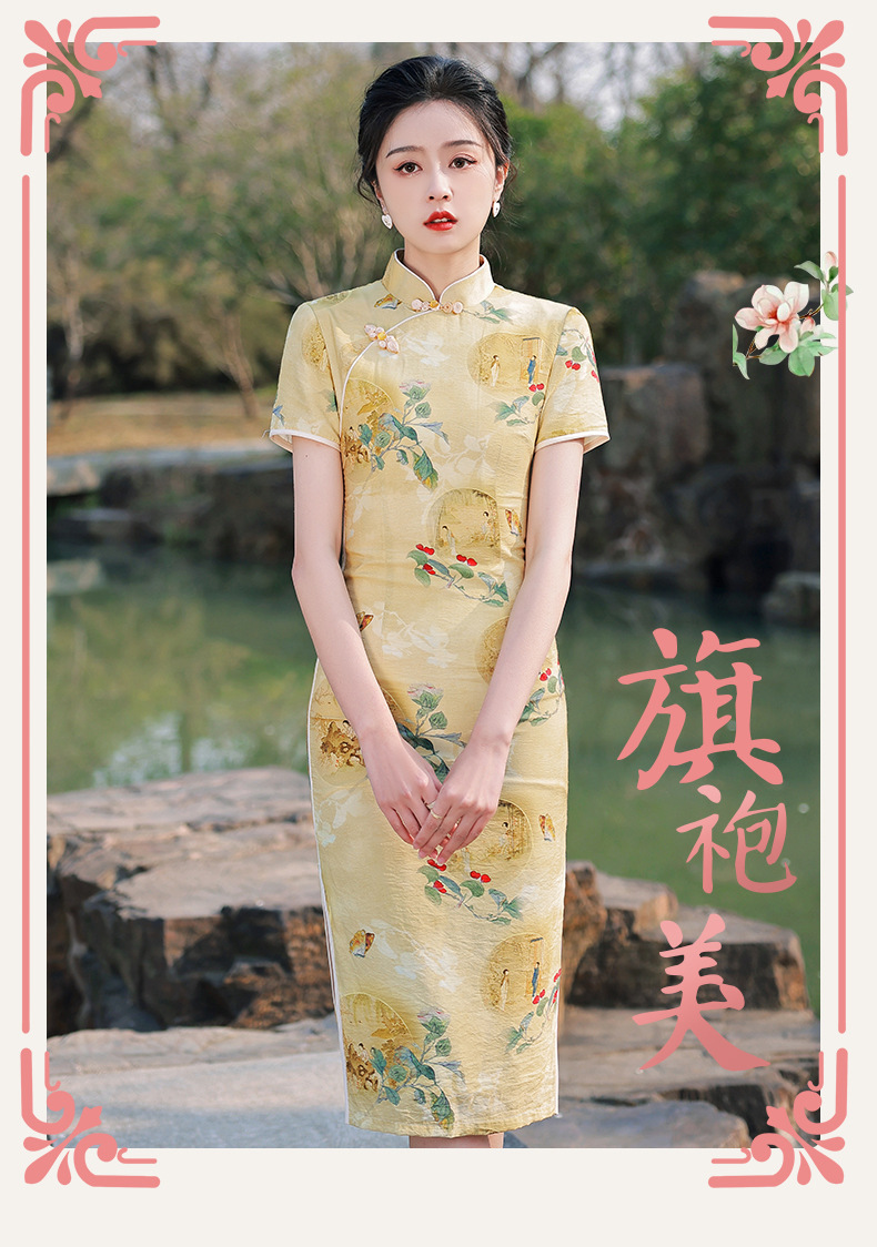 新款老上海复古改良,少女双层天丝棉旗袍HX-249