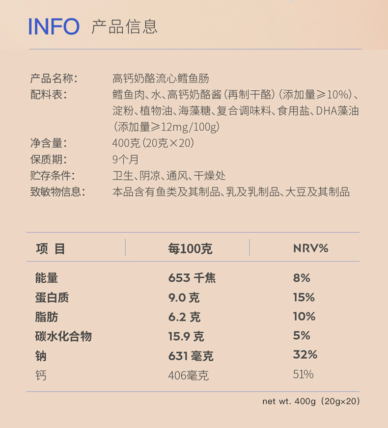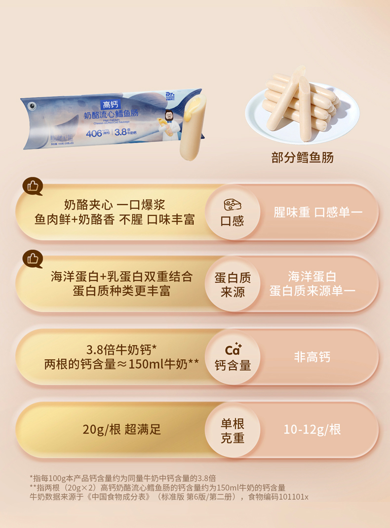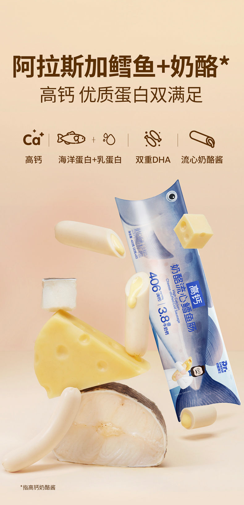 【山姆同款】奶酪博士 高钙奶酪流心鳕鱼肠 400g/400g*2(赠湿巾2提)