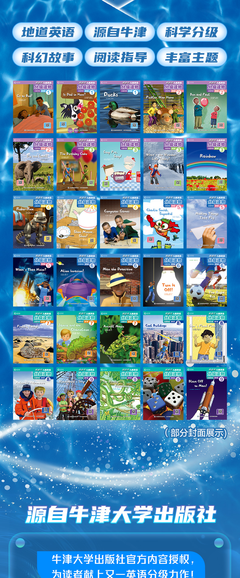本套《银盒号儿童英语分级读物:主题阅读基础篇》共包括30册图书、3册翻译手册、64张单词卡,线上还配套了原版英式英语朗读音频和读后测试,方便作为中国儿童入门级英语读物使用。