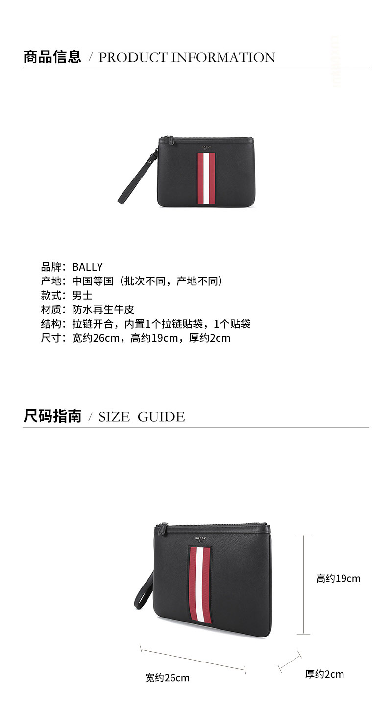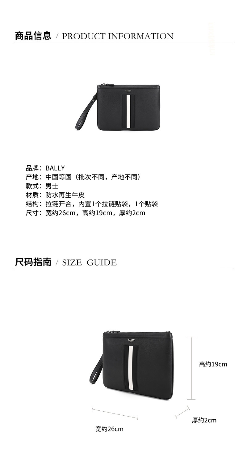 【国内现货】BALLY/巴利 2021款 男士防水再生牛皮手拿包 BEX MD