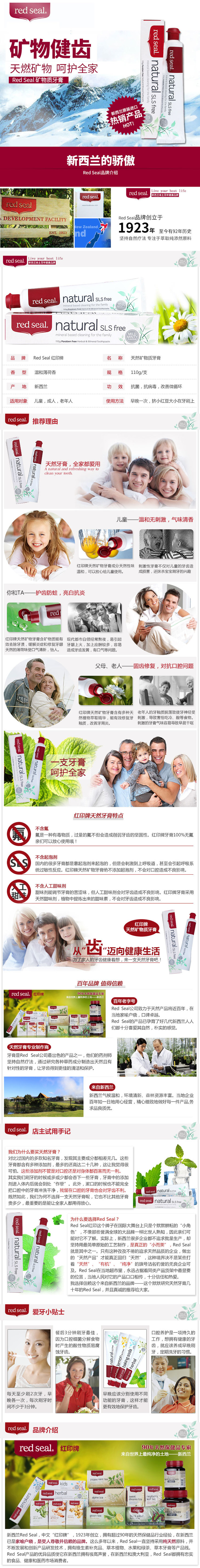 RED SEAL 矿物质牙膏 100G 3支