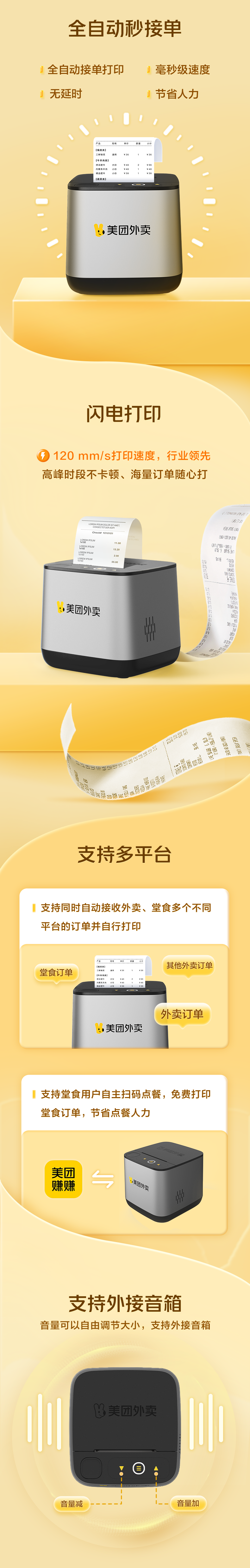 美团智能播报外卖云打印机5.0 WiFi/4G撕纸款 可播报顾客备注内容 支持双平台自动接单