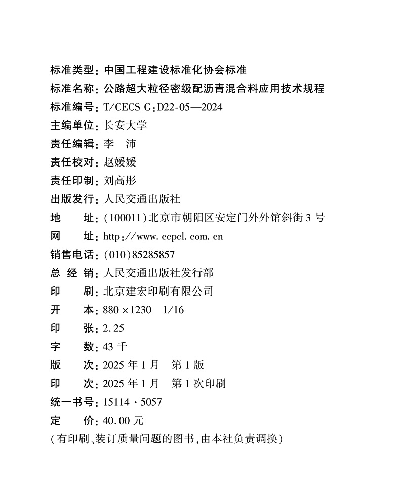 书名:公路超大粒径密级配沥青混合料应用技术规程(T/CECS G:D22-05—2024)