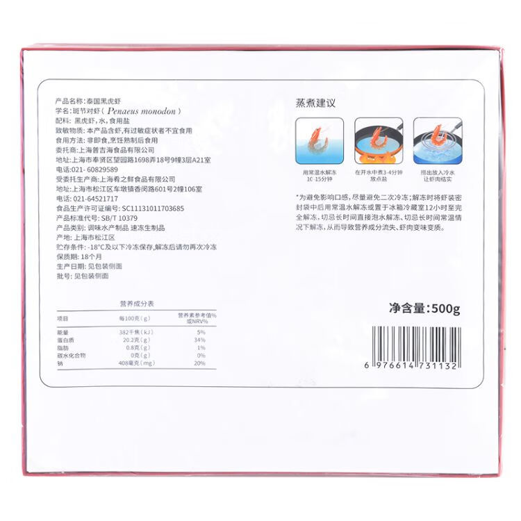 巨型泰国活冻黑虎虾500g/盒
