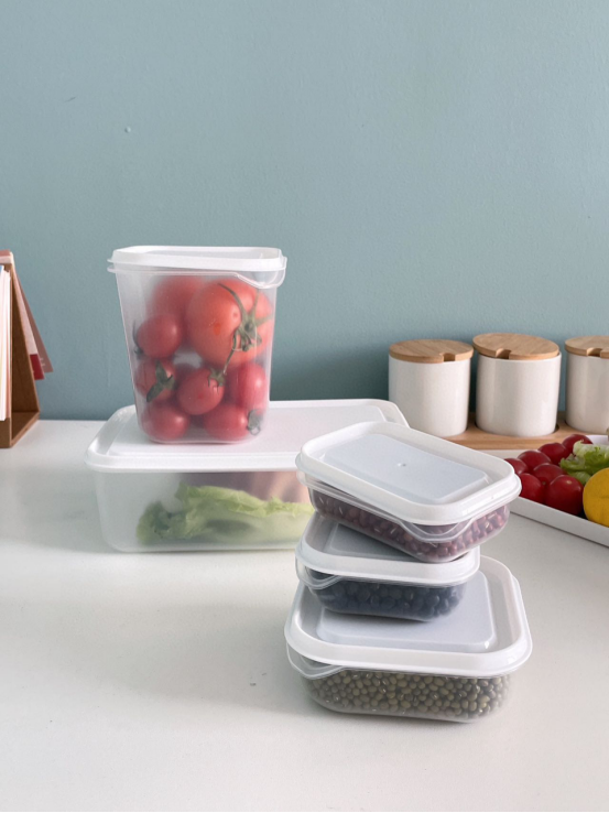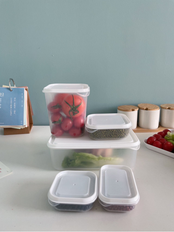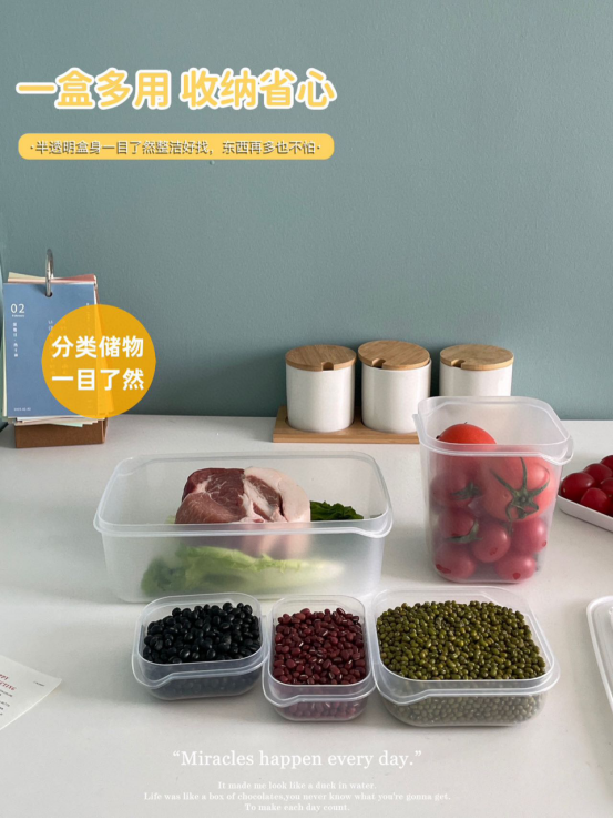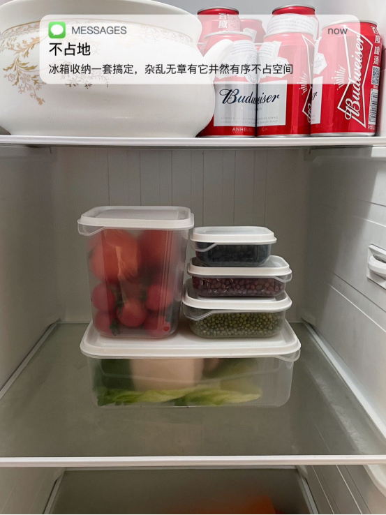 各种尺寸的保鲜盒可以让冰箱整体上更清爽整洁 还能防止串味儿 让你能方便快速地找到需要的食品 做工精致牢固,不易磨损,圆角造型,光滑不伤手 不仅适用于冰箱,还可用于桌子下边,非常方便