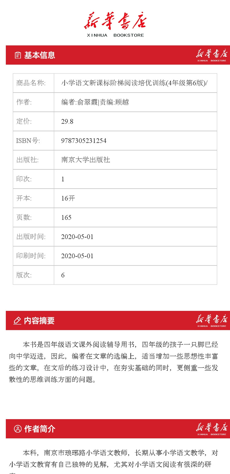 小学语文阶梯阅读训练(4年级新版第6版) 俞老师教阅读 四年级 课外阅读书专项阅读 第六版 四年级教辅开学季作业 南京大学出版社