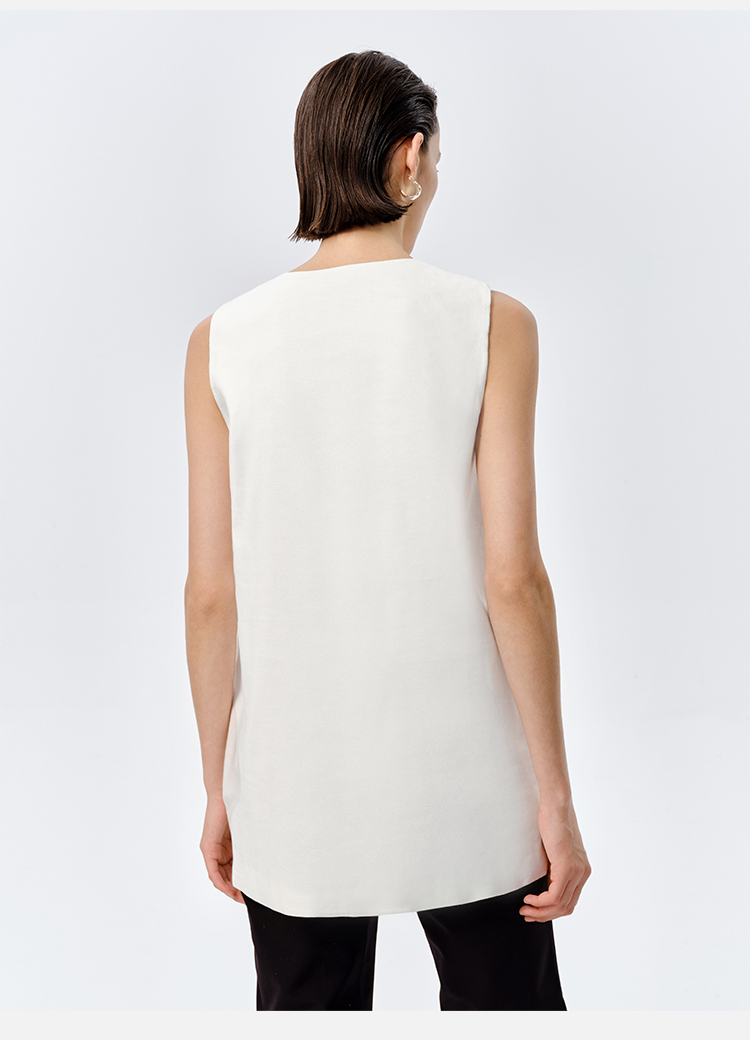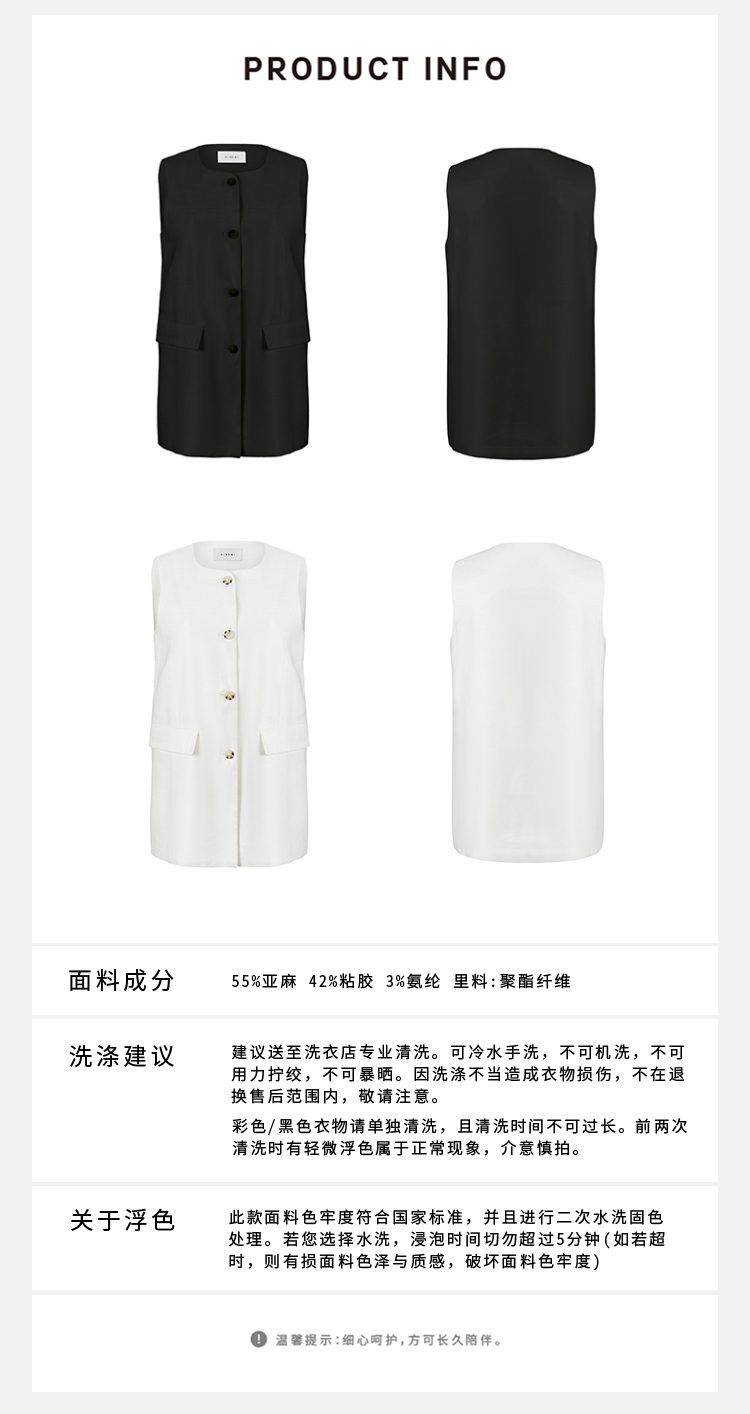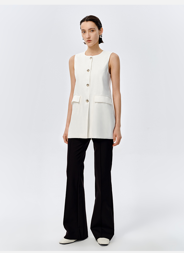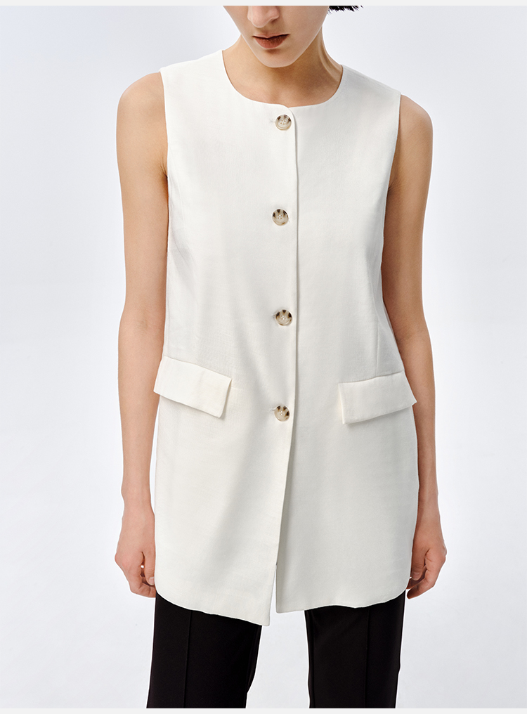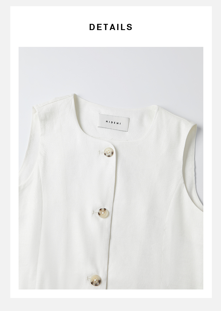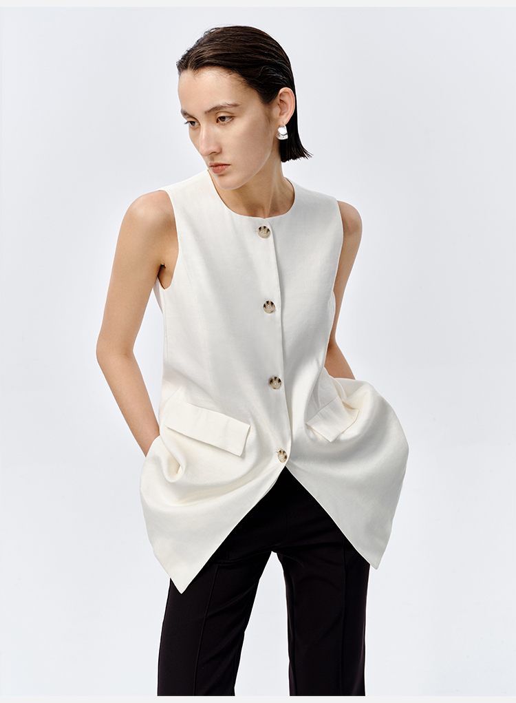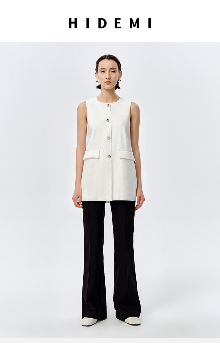 HIDEMI 水洗亚麻圆领口袋显瘦极简西装马甲