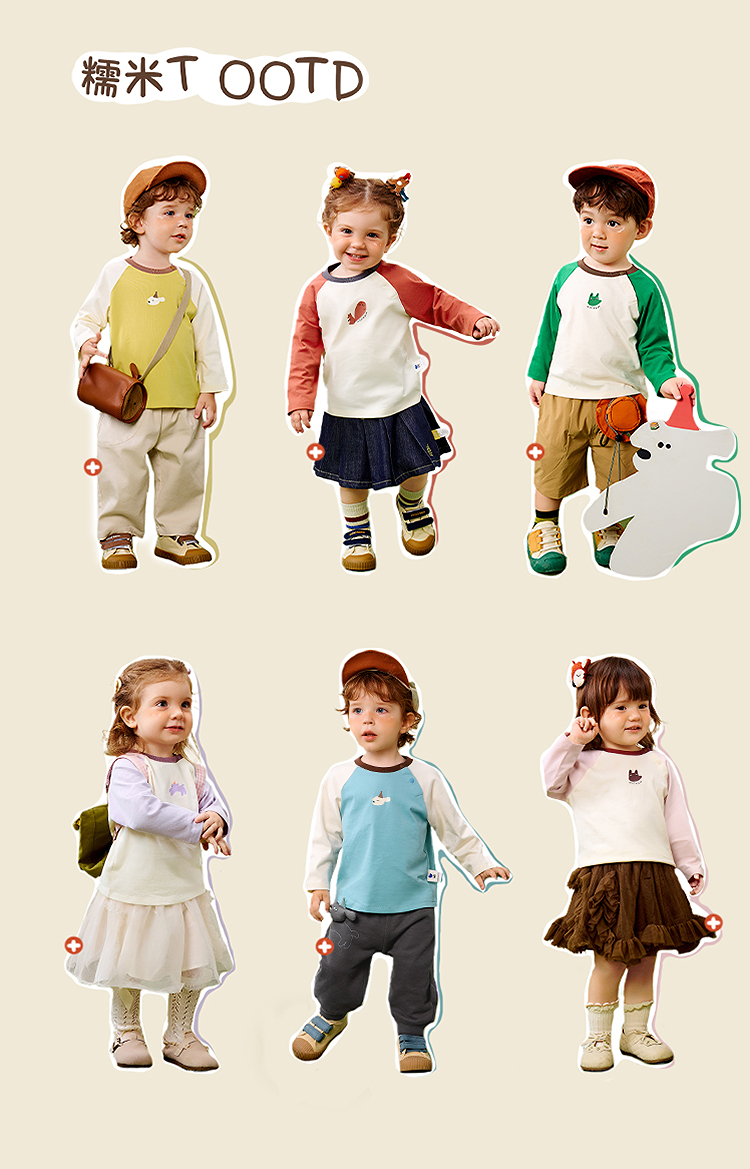 【糯米T】迷你巴拉男童女宝儿童长袖T恤春纯棉婴儿宝宝打底衫