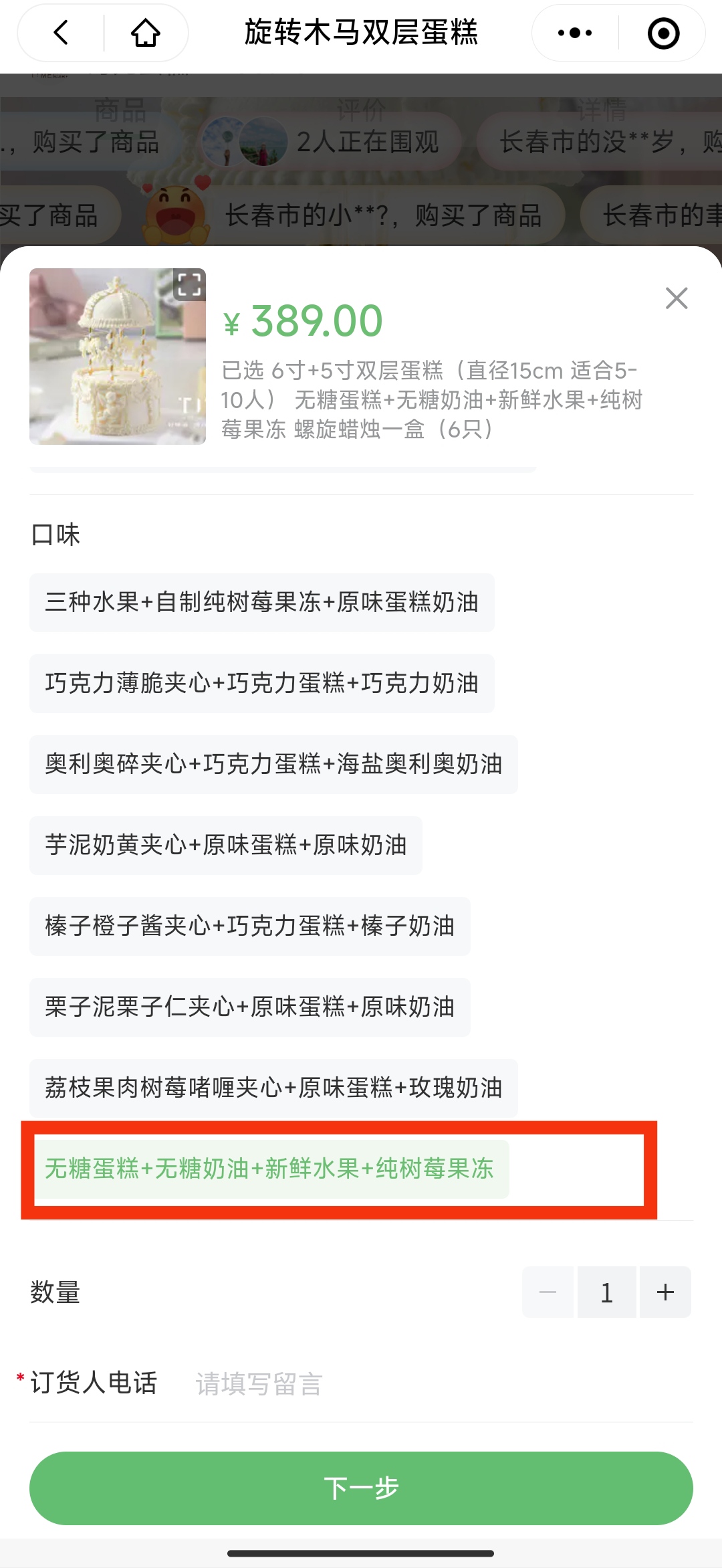 2.口味列表中选择“无糖蛋糕”即可: