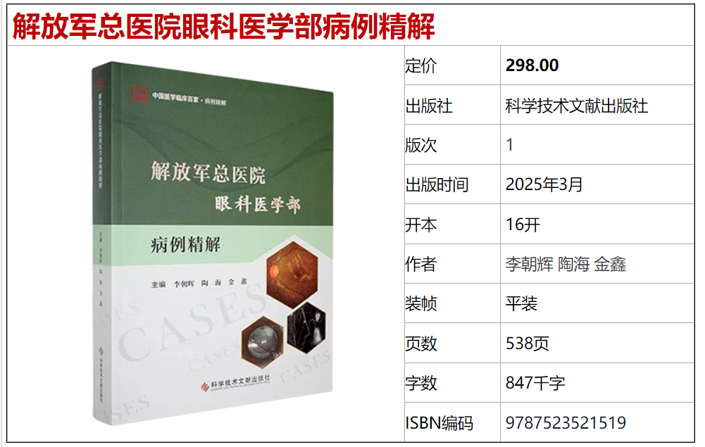 书名:解放军总医院眼科医学部病例精解
