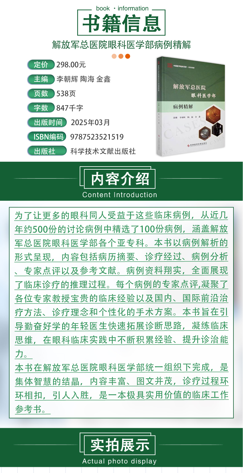 解放军总医院眼科医学部病例精解 李朝辉 陶海 金鑫 主编 内容包括病历摘要诊疗经过病例分析等9787523521519 科学技术文献出版社
