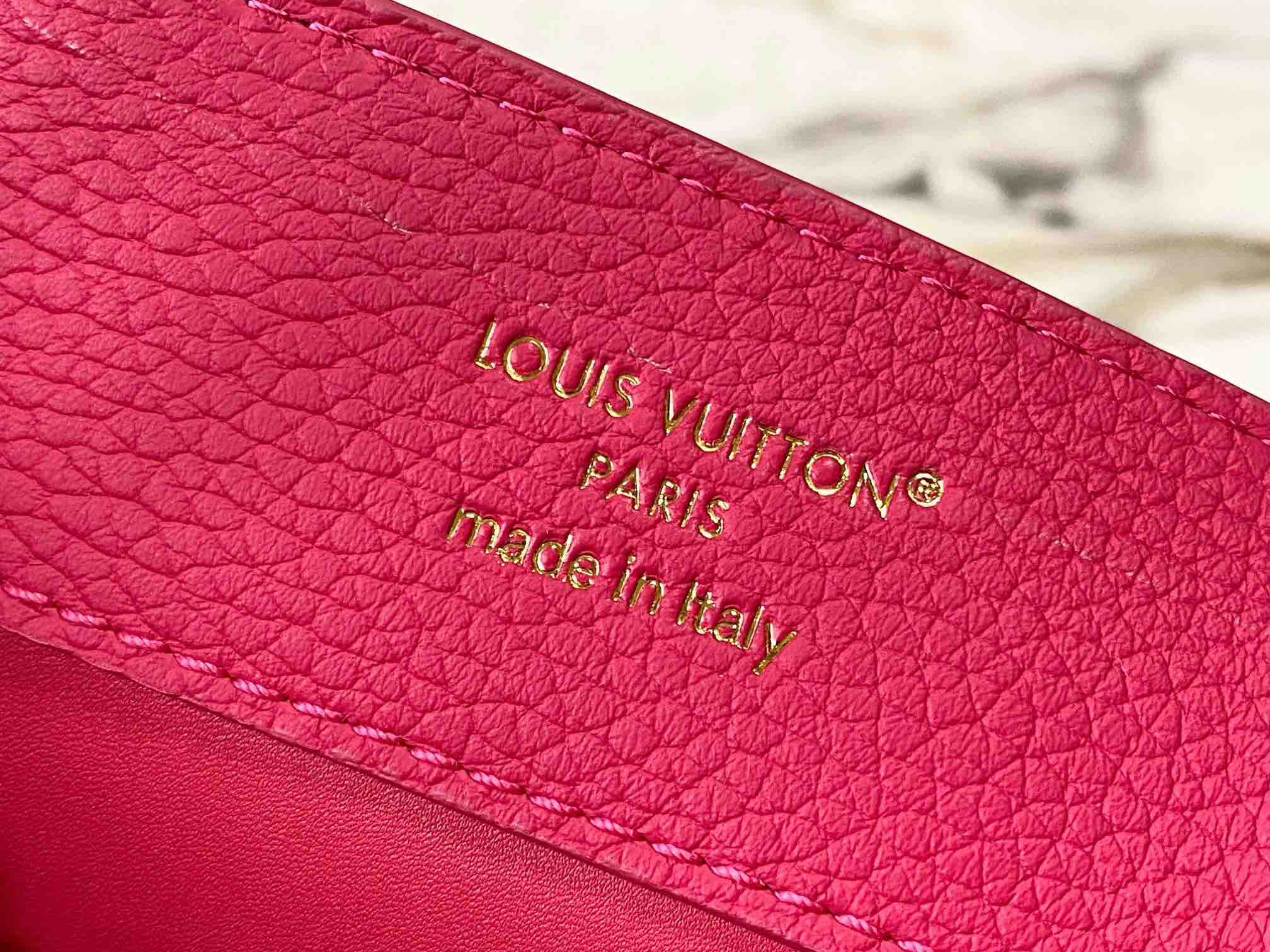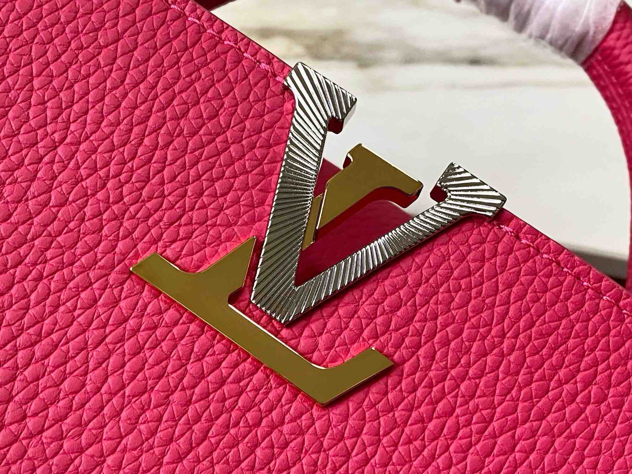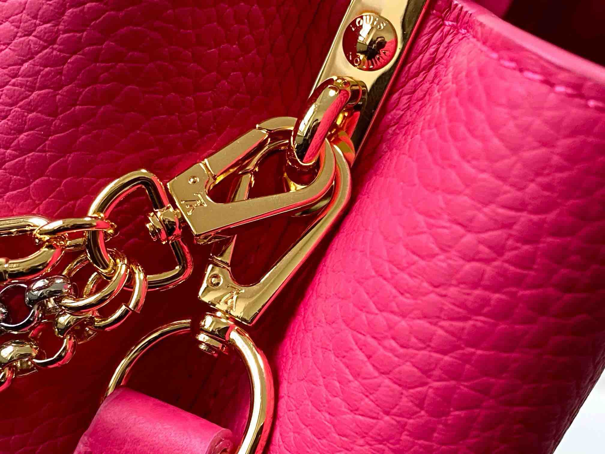 秋冬特惠💰1730 渠道级LV 新品 te级LV 动态芯片 M26507/M48865紫玫红光线链条款 这款Capucines采用引人注目的、精致的宝石色调版本装饰有品牌的双镀锌Infinity链条 采用Taurillon皮革制成 饰有标志性的Monogram花卉图案 以及LV首字母标识 这些标识经过独特的放射状效果处理 这种双重携带风格包括一个内部的扁平口袋 且有多种佩戴方式 Size : 27 * 18 * 9 CM
