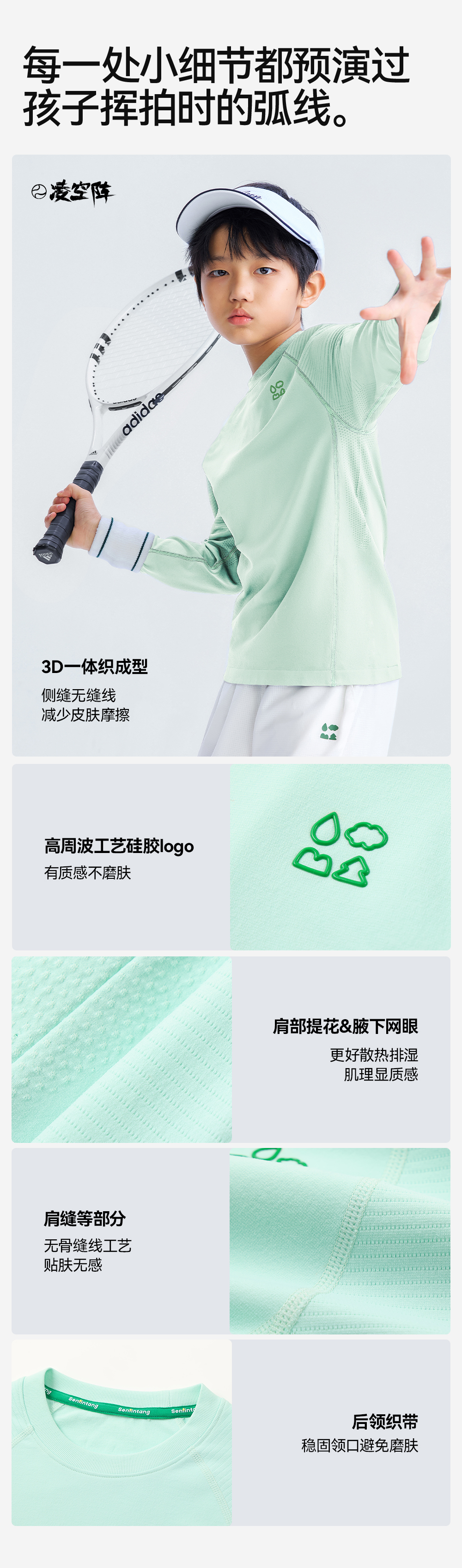 【一体织长袖T】森林棠26春吸湿透气舒弹中大童插肩袖运动T恤20261038【HZ】 商品图4
