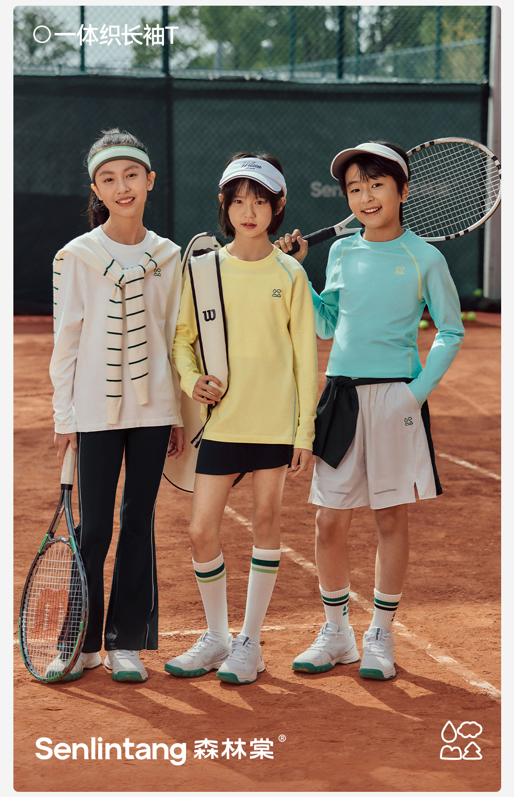 【一体织长袖T】森林棠26春吸湿透气舒弹中大童插肩袖运动T恤20261038【HZ】