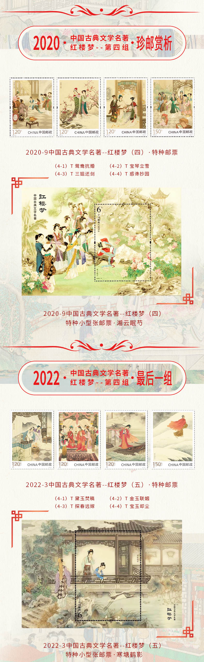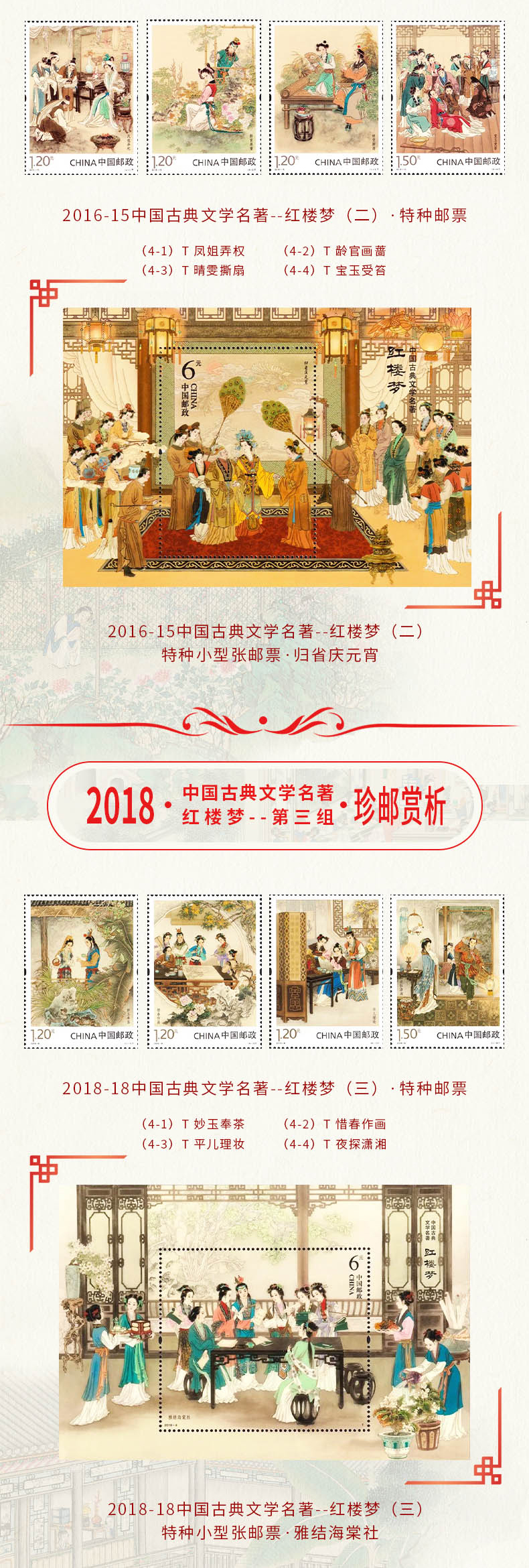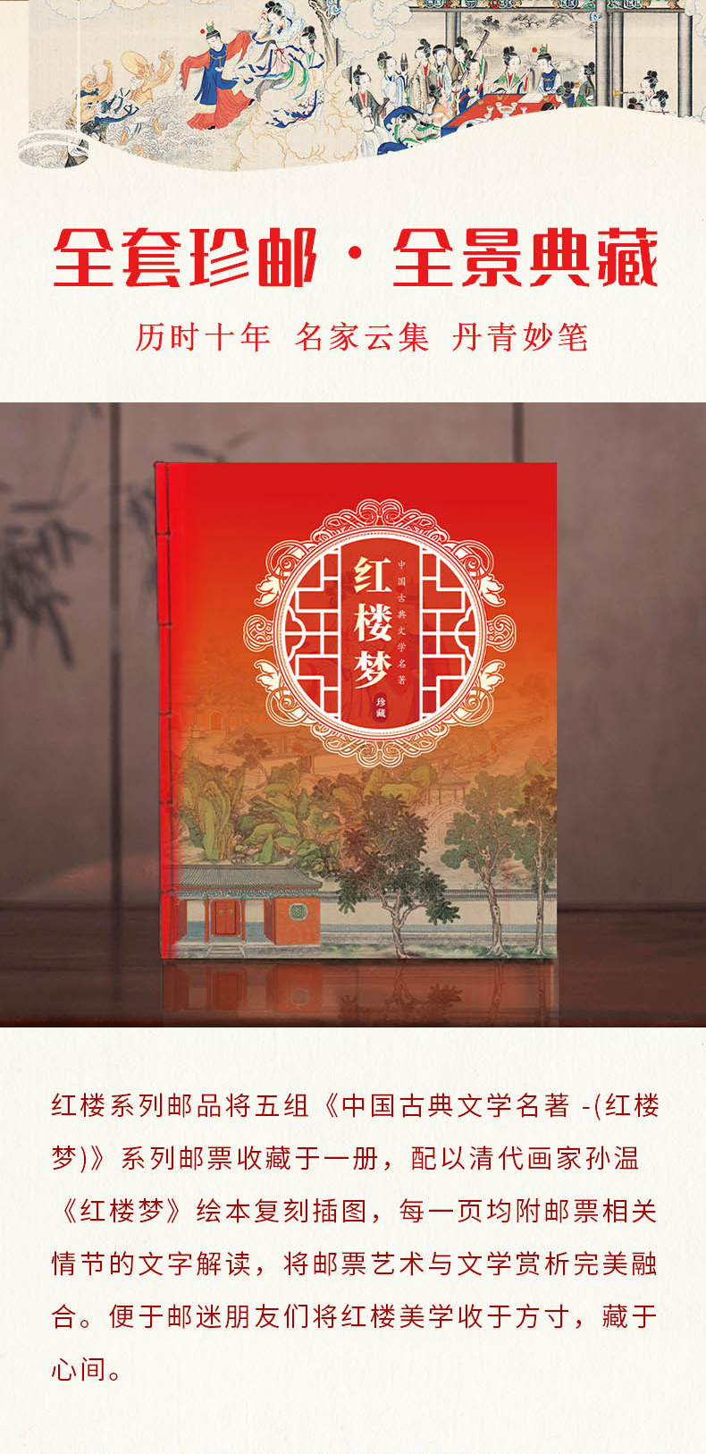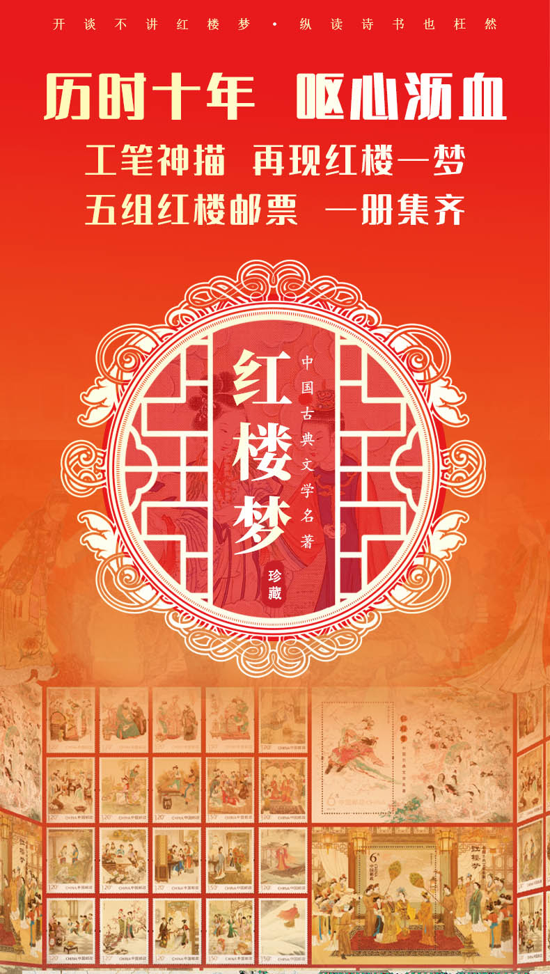 【超值赠品:帆布袋/卡片明信片】《中国古典文学名著·红楼梦》邮票珍藏册 系列邮票1-5全收录 含套票、小型张等品类