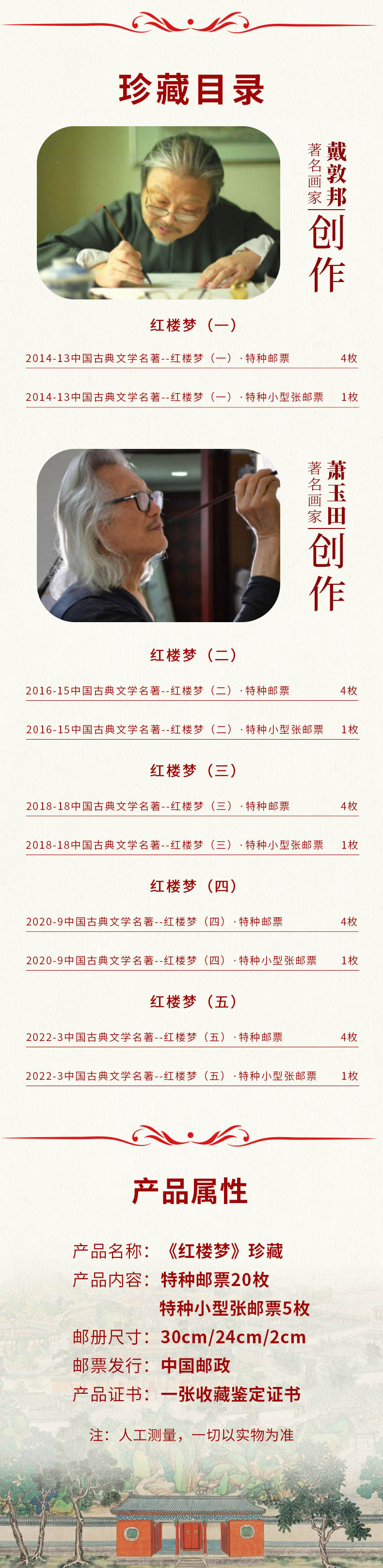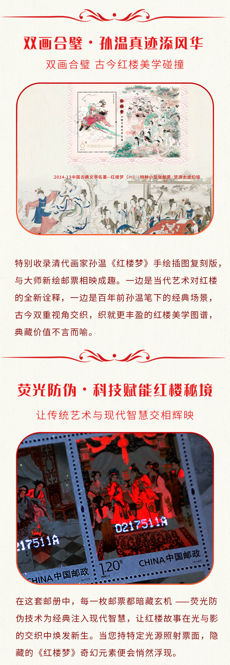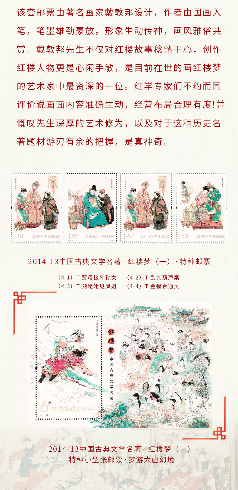 【超值赠品:帆布袋/卡片明信片】《中国古典文学名著·红楼梦》邮票珍藏册 系列邮票1-5全收录 含套票、小型张等品类