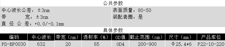 BP632/20k OD4 @200-900 T>85% φ25.4*6带通滤光片 (带套圈)