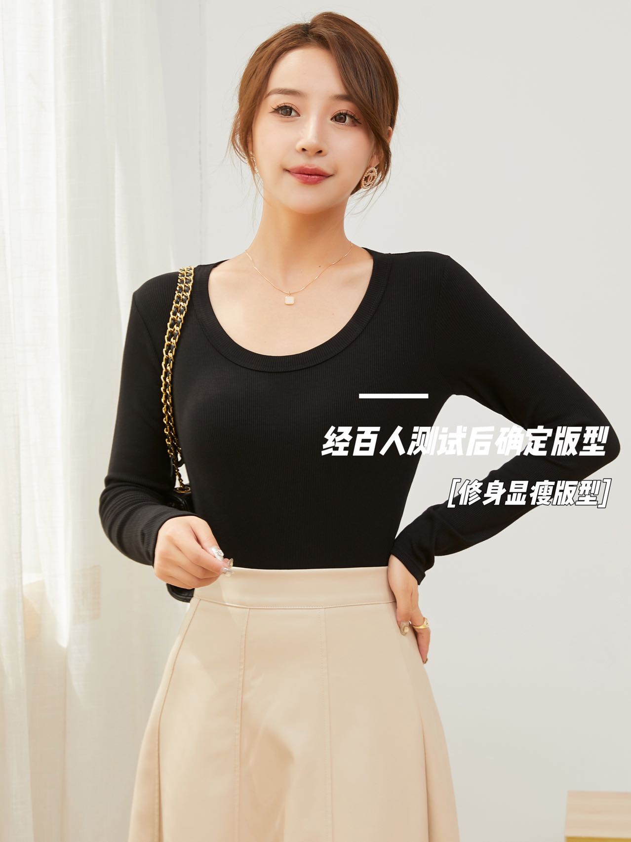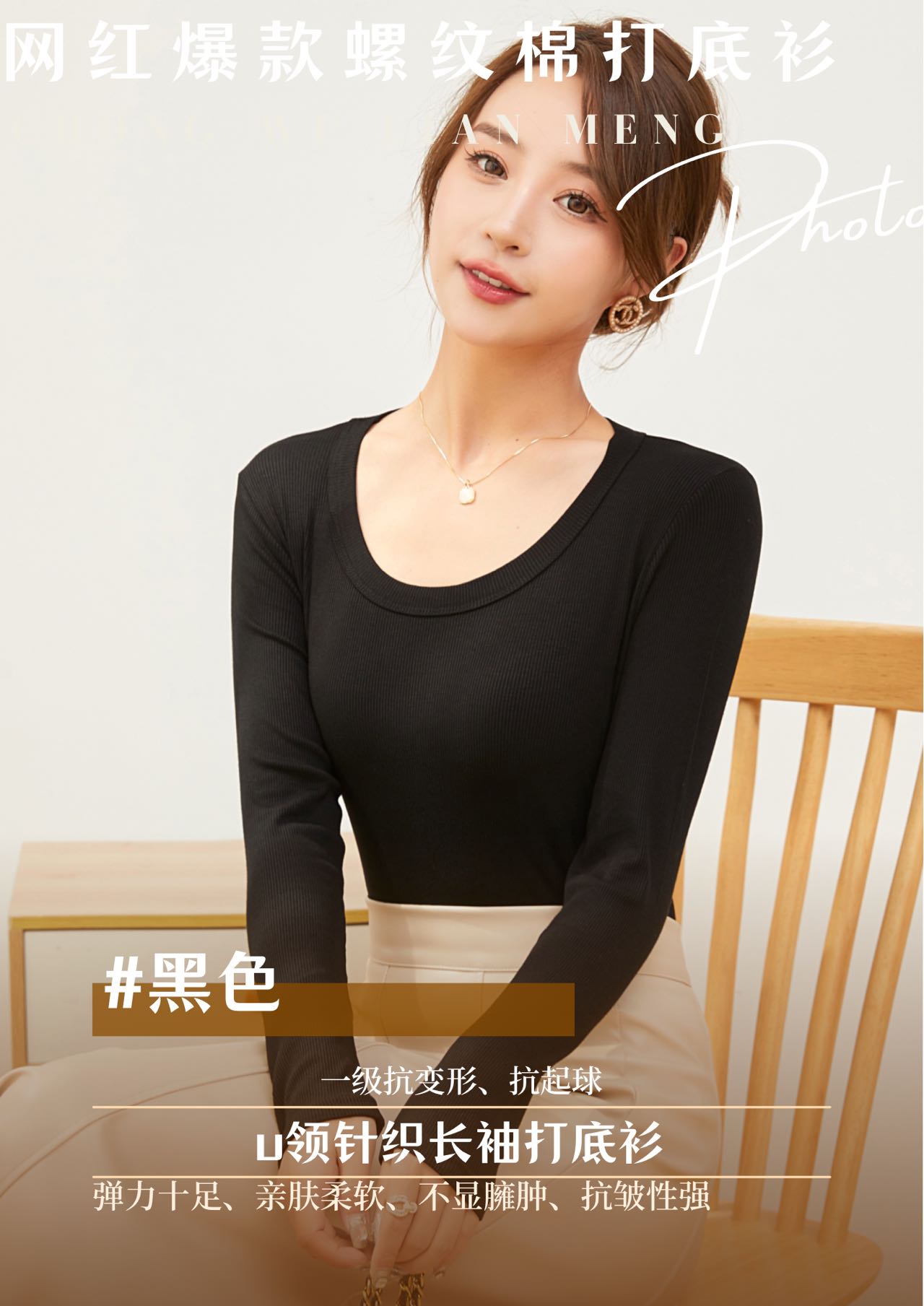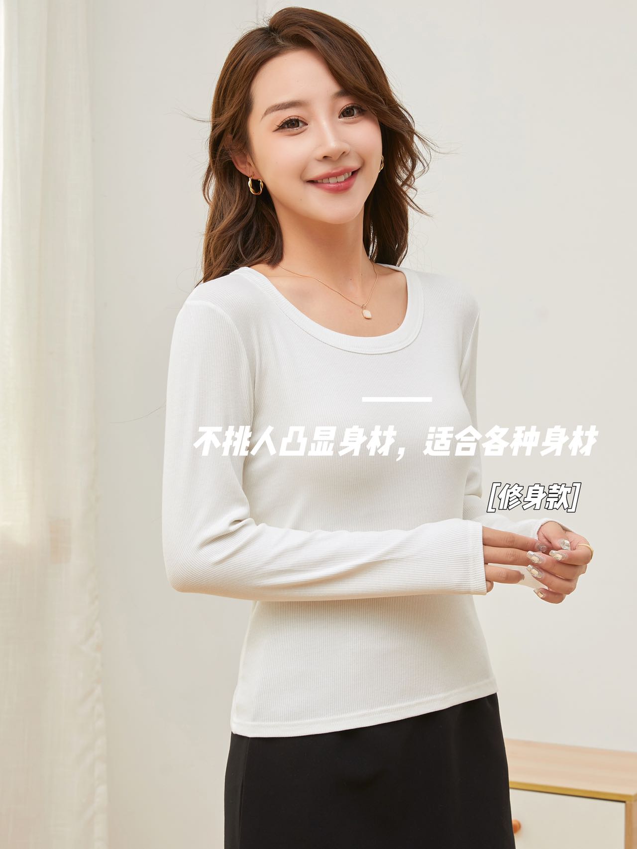 【YW】无忧购“清仓福利”柔软亲肤抗皱修身显瘦U领针织长袖打底衫2582(截单后3-5天发货)