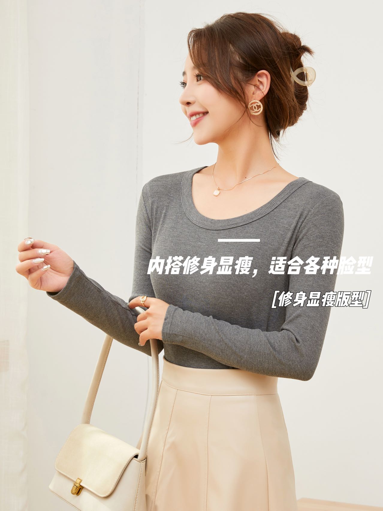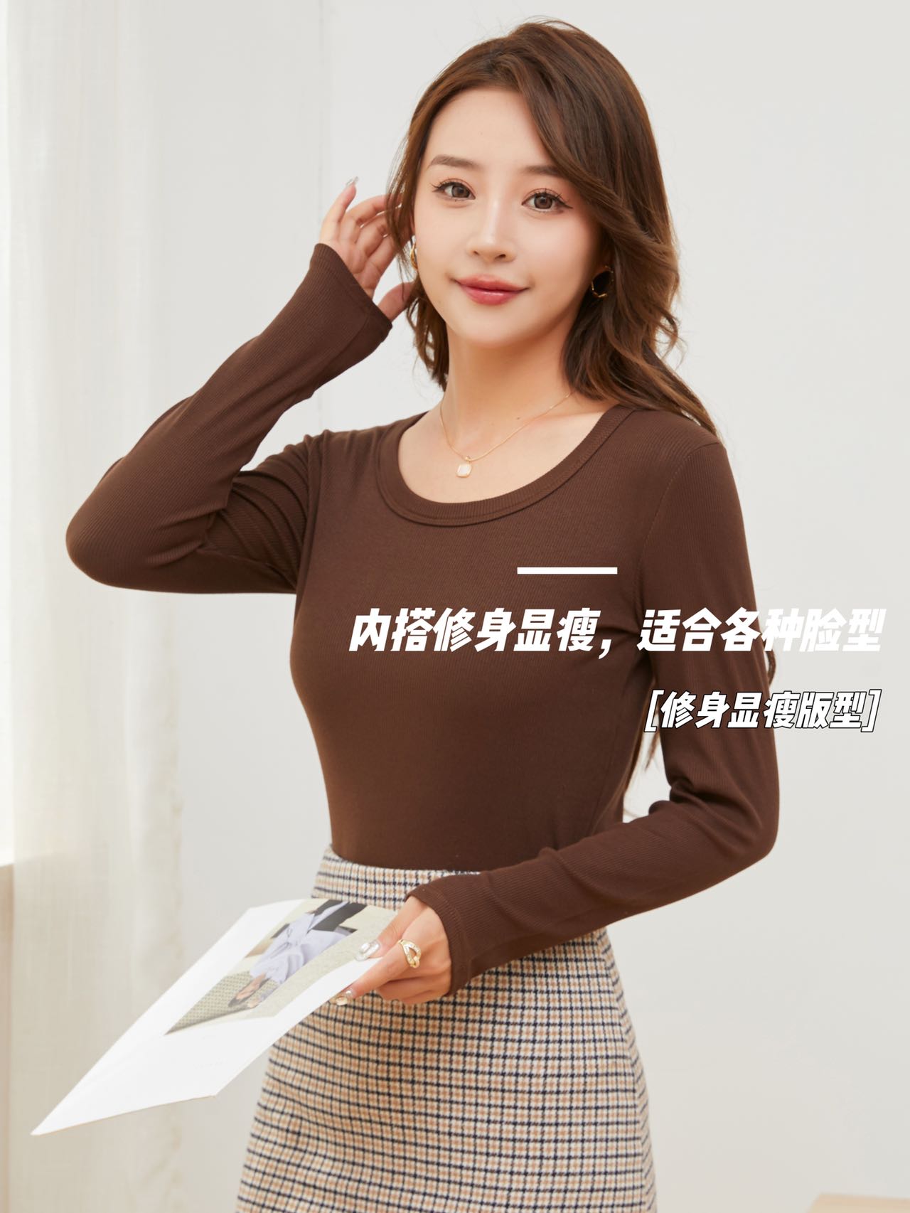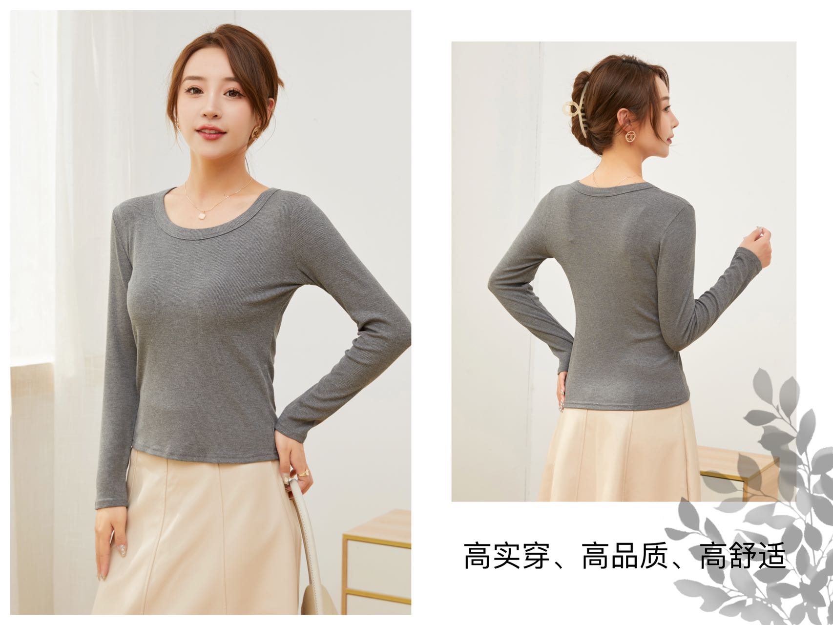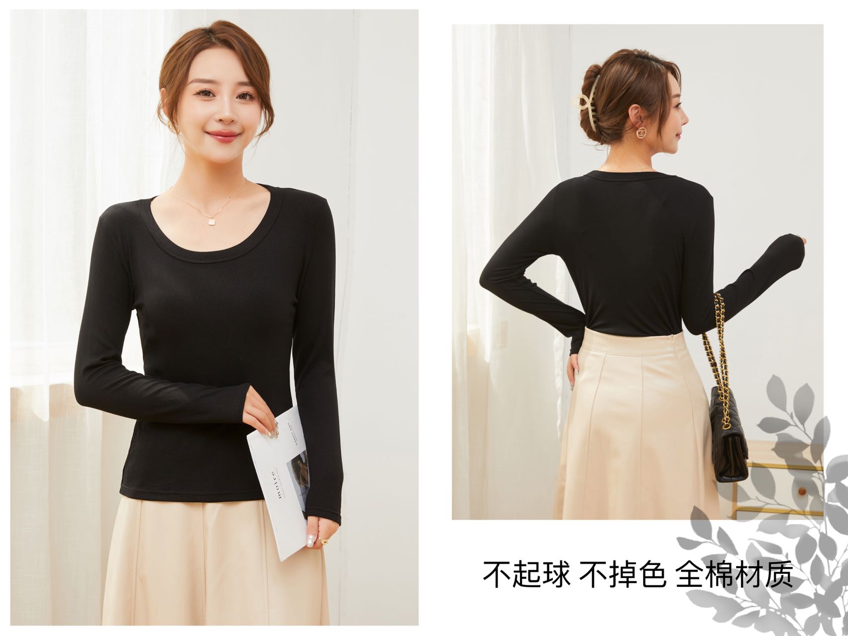【YW】无忧购“清仓福利”柔软亲肤抗皱修身显瘦U领针织长袖打底衫2582(截单后3-5天发货)