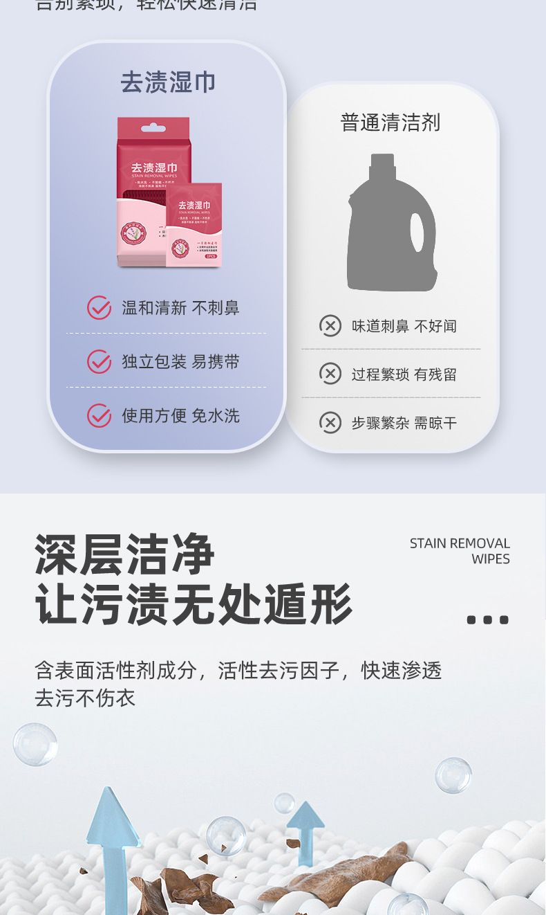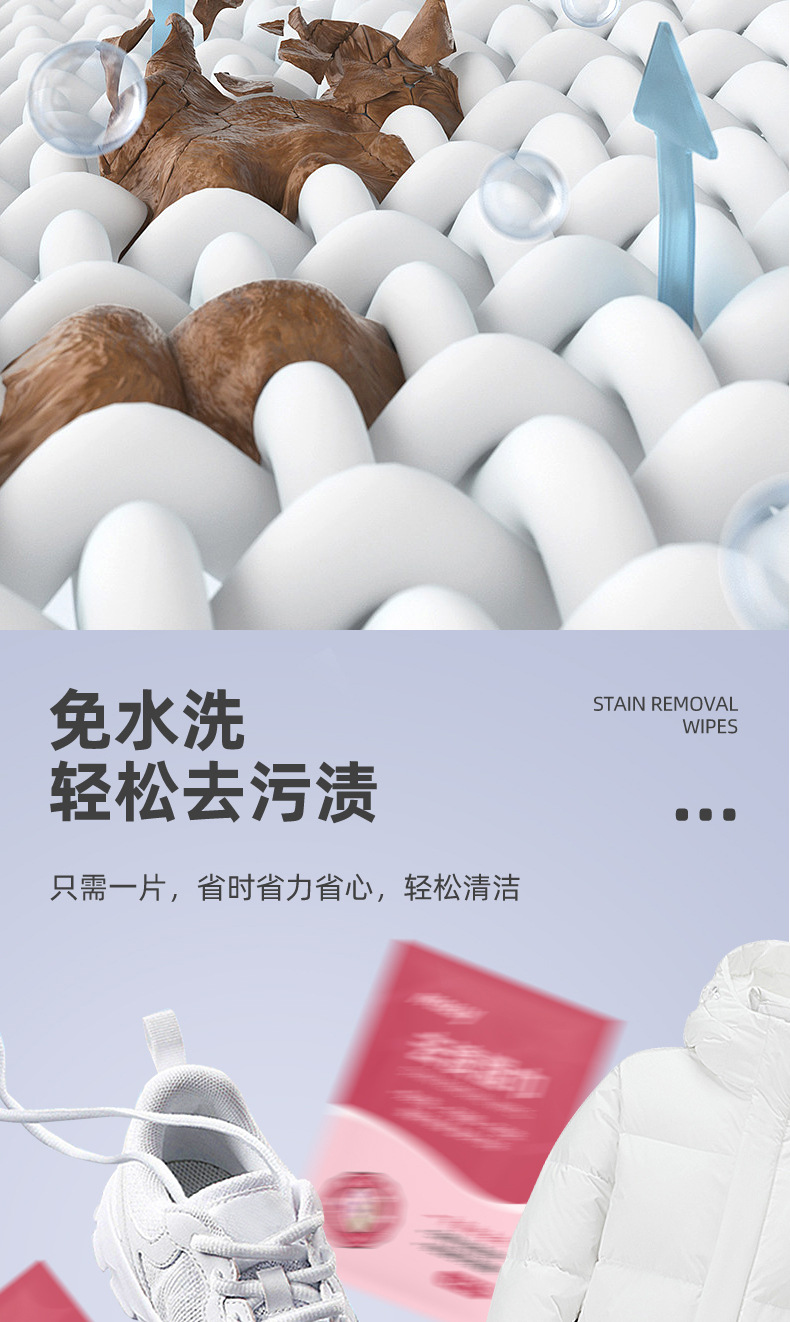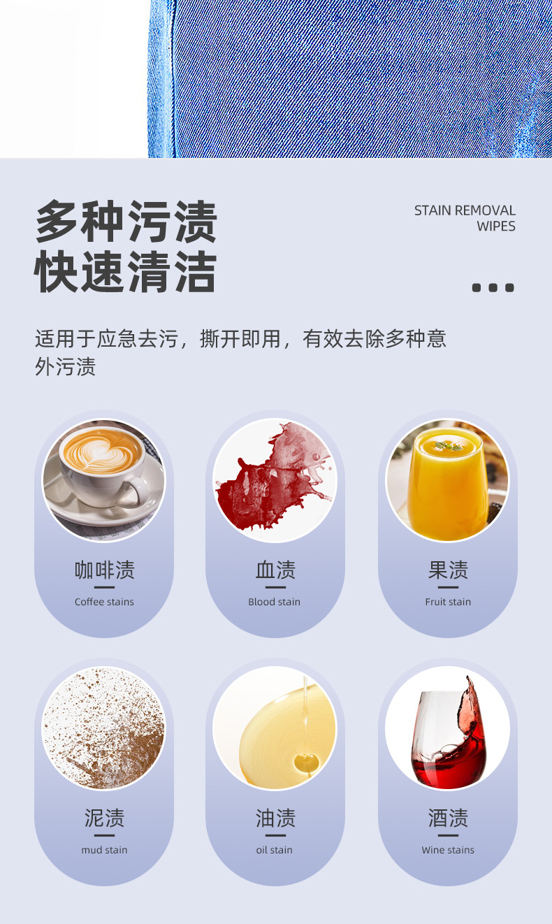 【去渍不留痕!衣物去渍湿巾】免洗清洁湿巾去污去油小白鞋便携羽绒服去污湿巾 只需一片即可