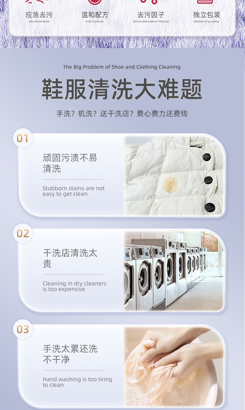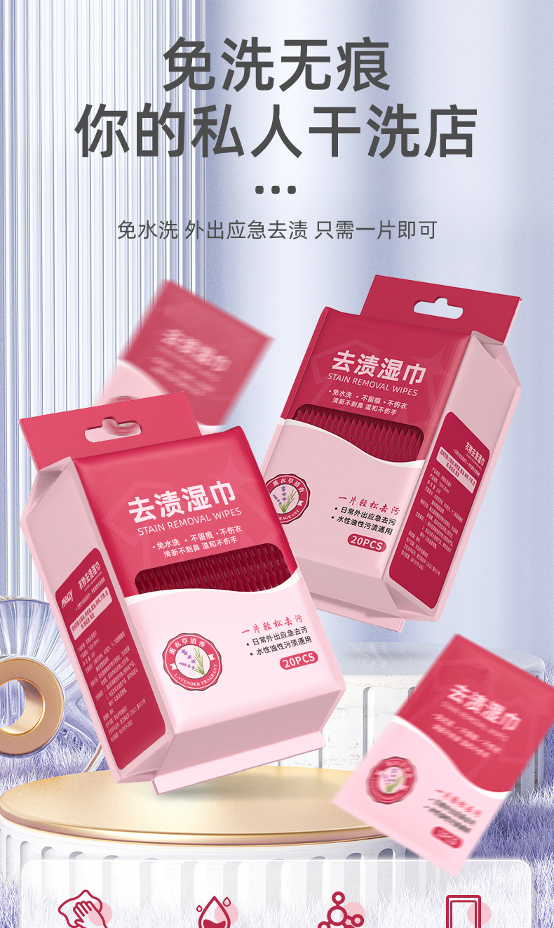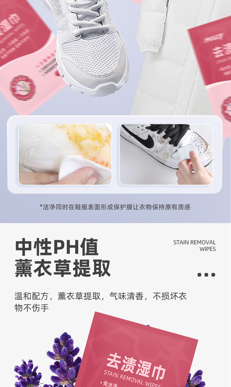 【去渍不留痕!衣物去渍湿巾】免洗清洁湿巾去污去油小白鞋便携羽绒服去污湿巾 只需一片即可