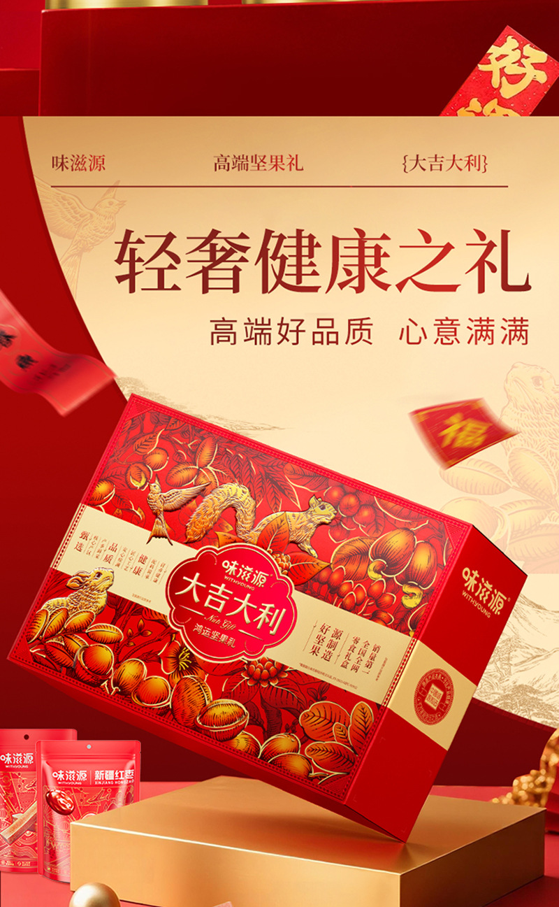 【味滋源坚果礼盒1199g】大吉大利年货送礼 小白杏混合坚果零食大礼包