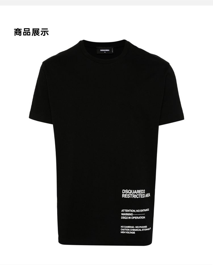 DSQUARED2 男士字母徽标印花棉质圆领短袖T恤 黑色 S71GD1451 D20020 900