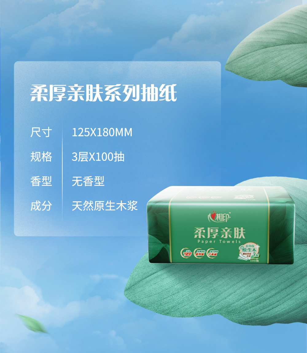 心相印 DT100柔厚亲肤三层塑装纸面巾3包*6提(100抽/包)新老包装随机发